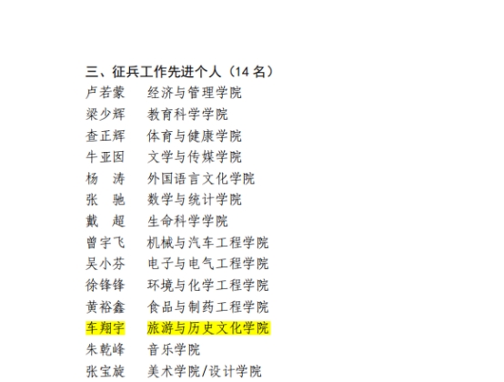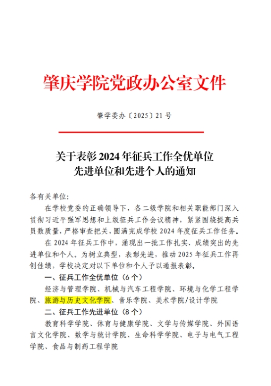 2024年征兵工作全优单位先进单位和先进个人的通知》,公司获评征兵工作全优单位,辅导员车翔宇老师获评征兵工作先进个人。