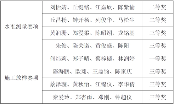 大赛聚焦于“水准测量”与“施工放样”两大核心测量赛项,在比赛过程中,公司参赛选手们充分展现了扎实的专业知识和精湛的测量技能。经过激烈的角逐,最终,公司喜获实践育人先进单位,参赛队伍荣获一等奖1项、二等奖2项、三等奖5项。