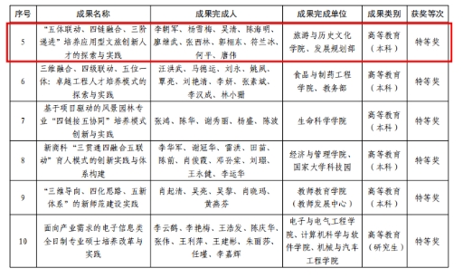 名称:《“五体联动、四链融合、三阶递进”培养应用型文旅创新人才的探索与实践》