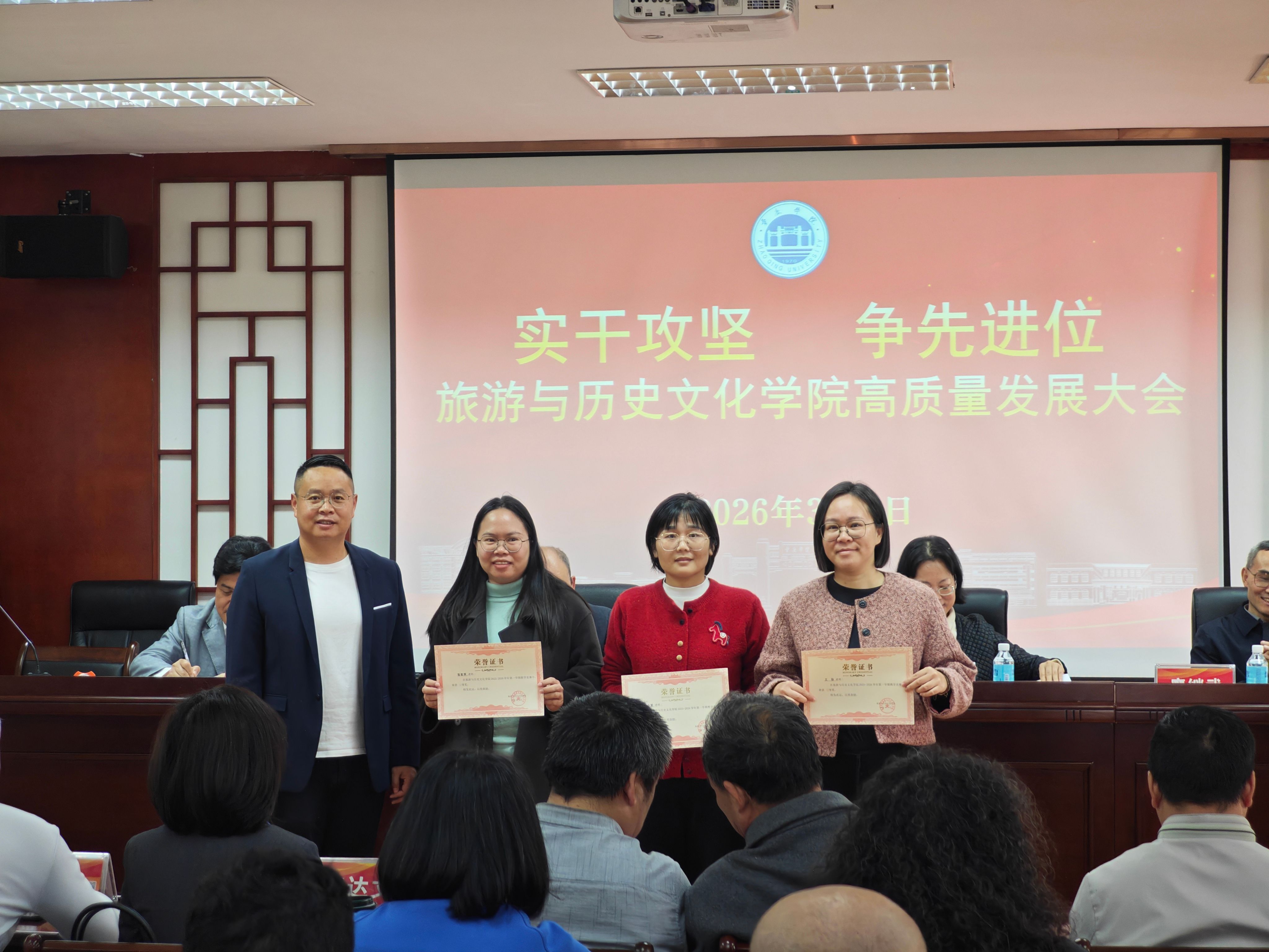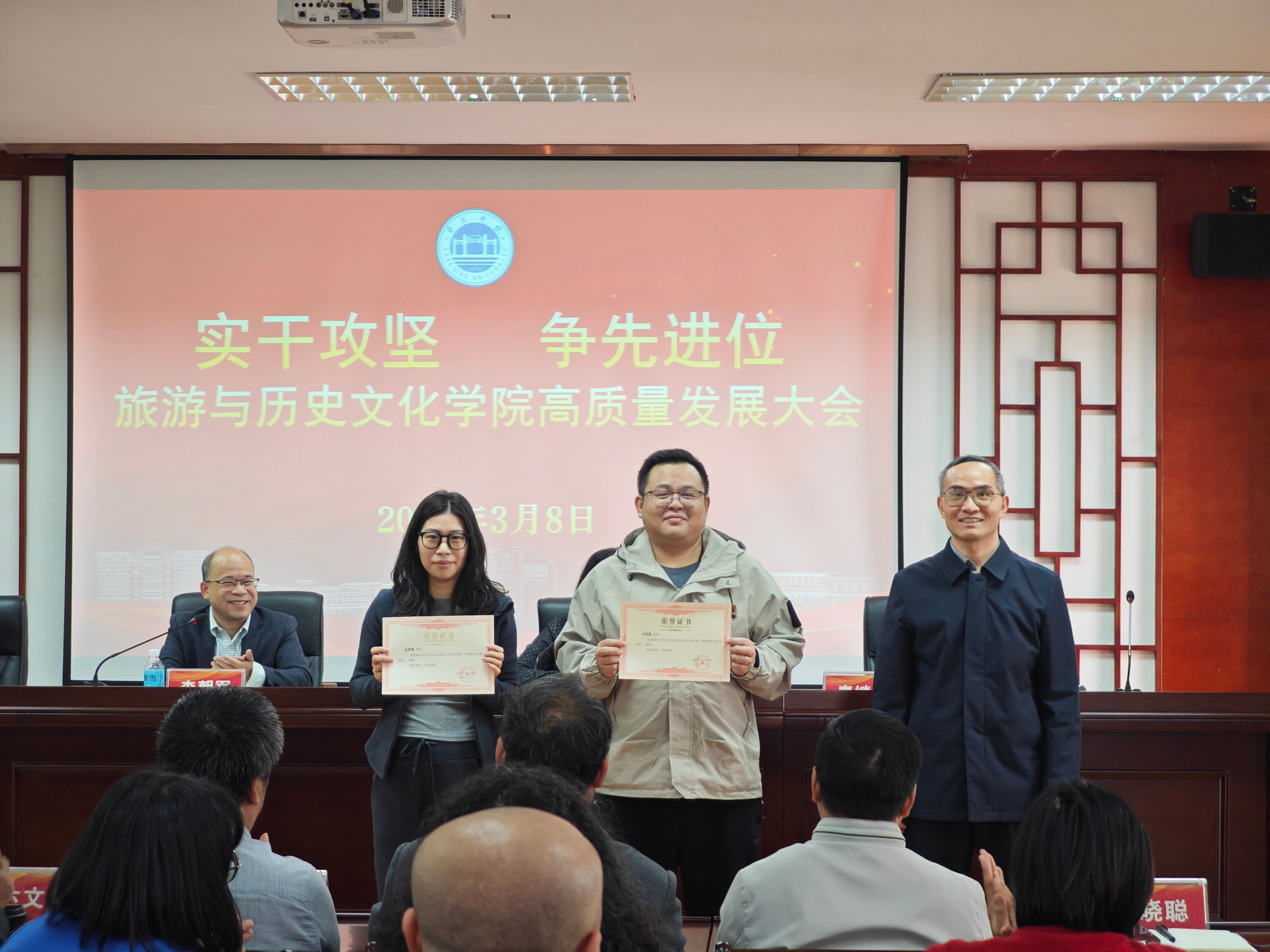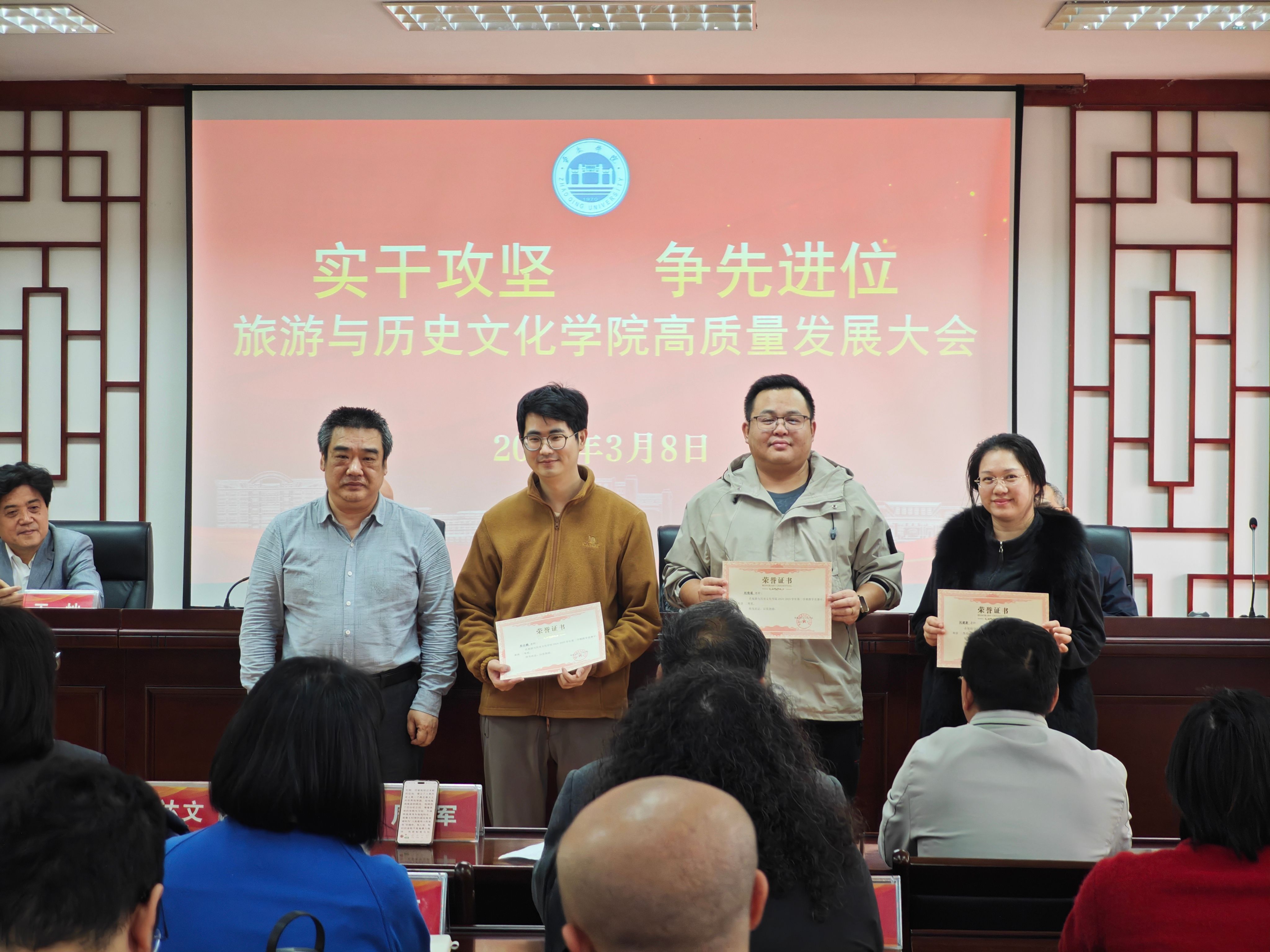 为表彰先进、树立标杆,进一步凝聚全院奋进合力,会议现场举行隆重表彰仪式,对荣获发展贡献奖、发展进步奖、集体贡献奖、教学竞赛奖等荣誉的先进个人与集体代表逐一表彰。公司领导为获奖代表颁发荣誉证书,肯定他们在教学科研、公司建设等工作中的突出贡献,激励全体教职工以先进为榜样,主动担当、奋勇争先。