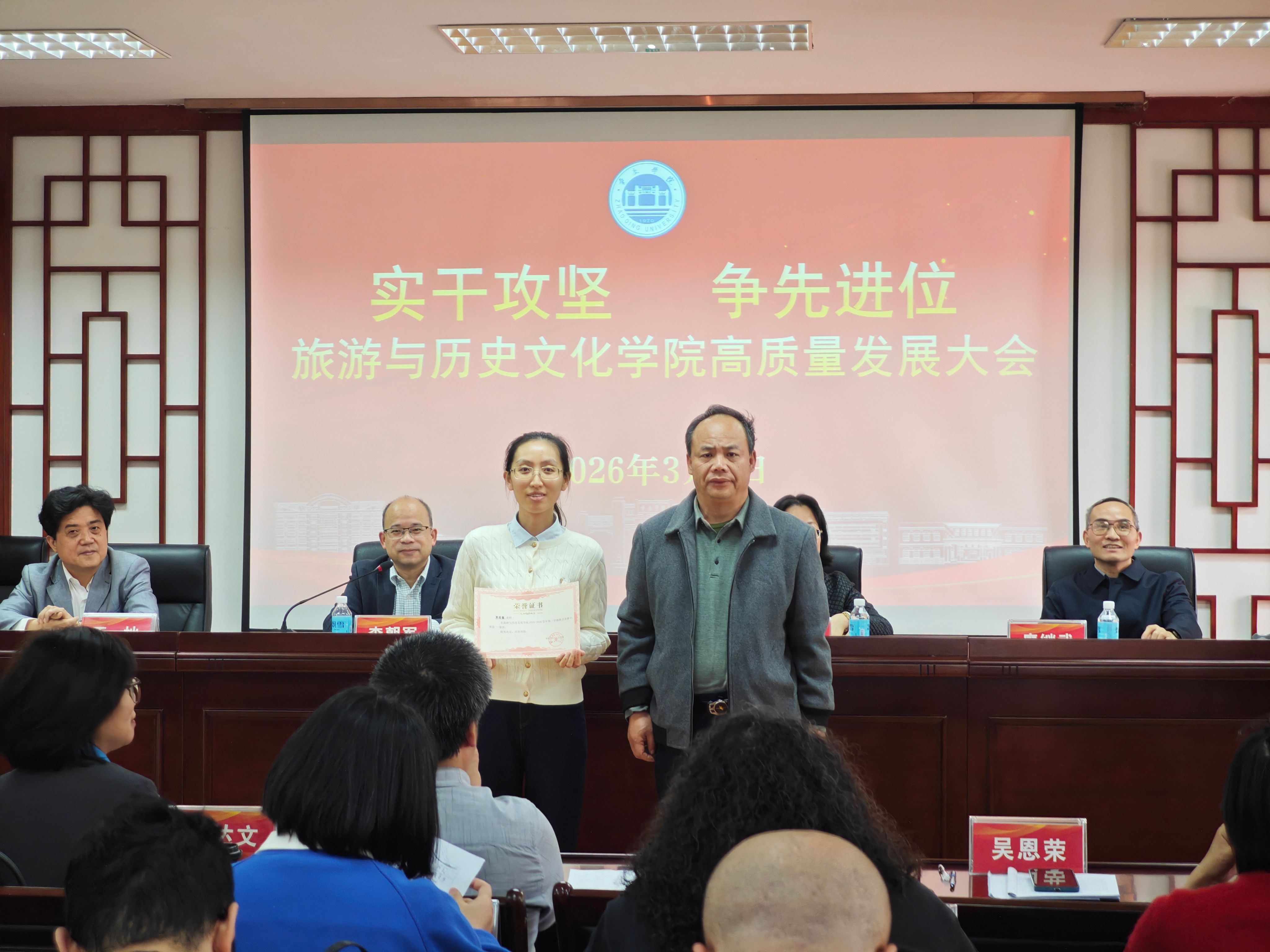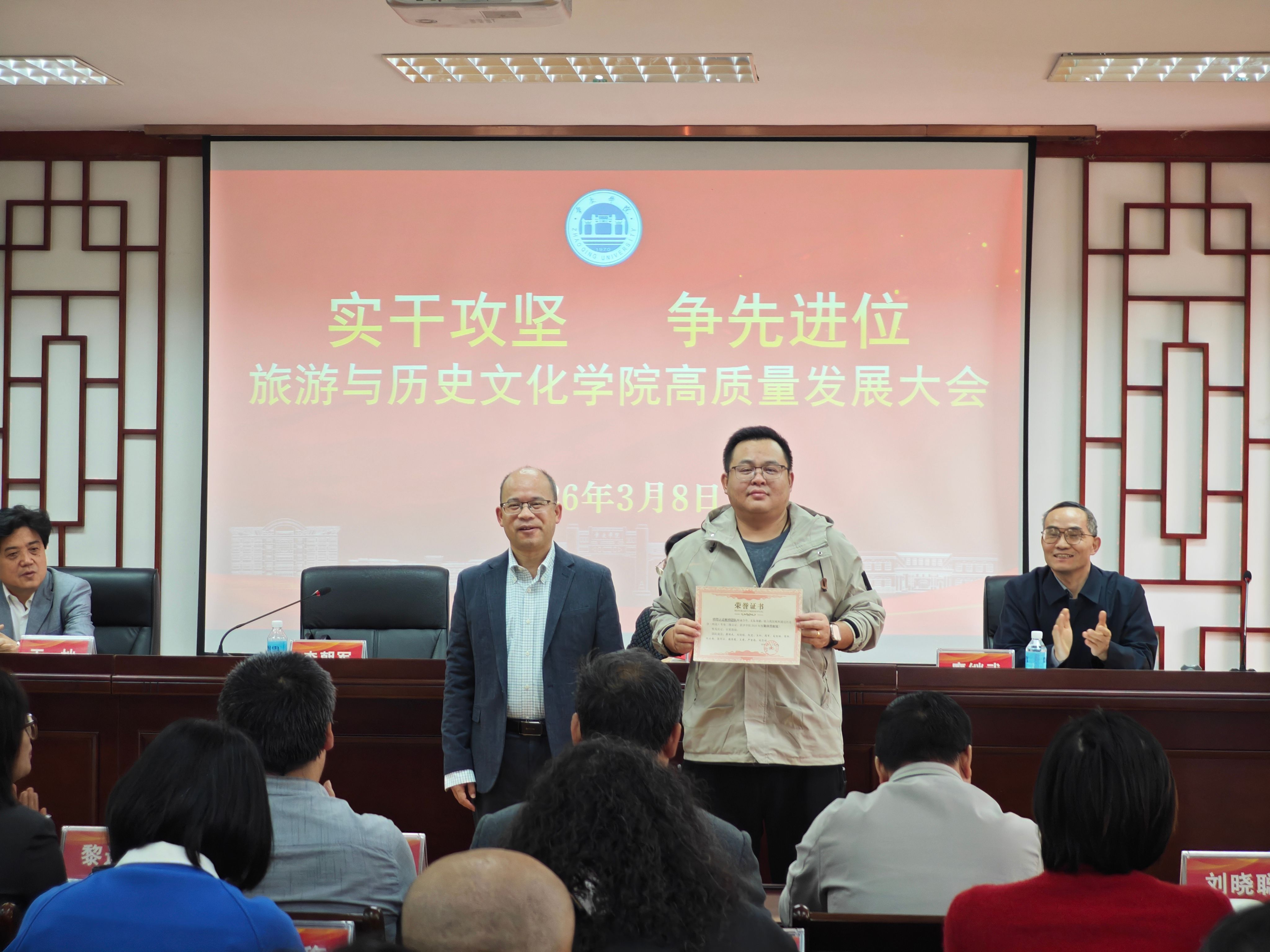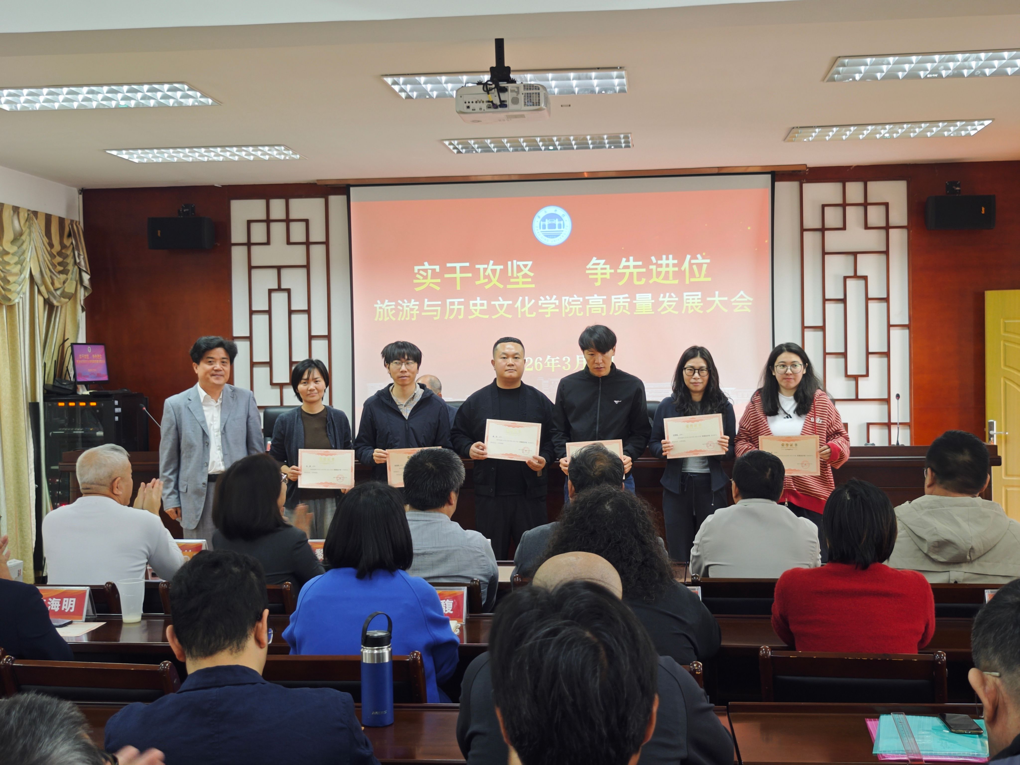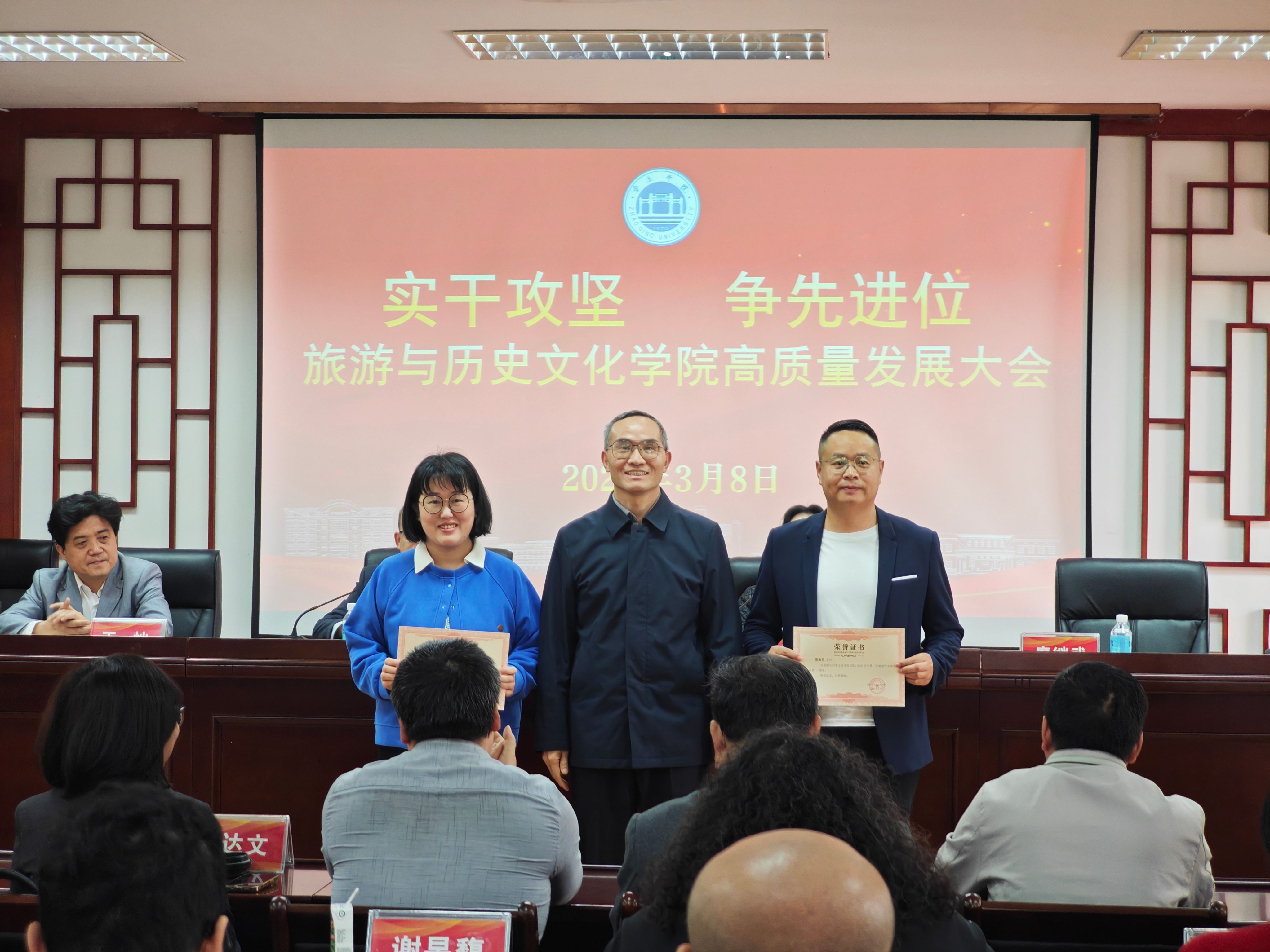 为表彰先进、树立标杆,进一步凝聚全院奋进合力,会议现场举行隆重表彰仪式,对荣获发展贡献奖、发展进步奖、集体贡献奖、教学竞赛奖等荣誉的先进个人与集体代表逐一表彰。公司领导为获奖代表颁发荣誉证书,肯定他们在教学科研、公司建设等工作中的突出贡献,激励全体教职工以先进为榜样,主动担当、奋勇争先。