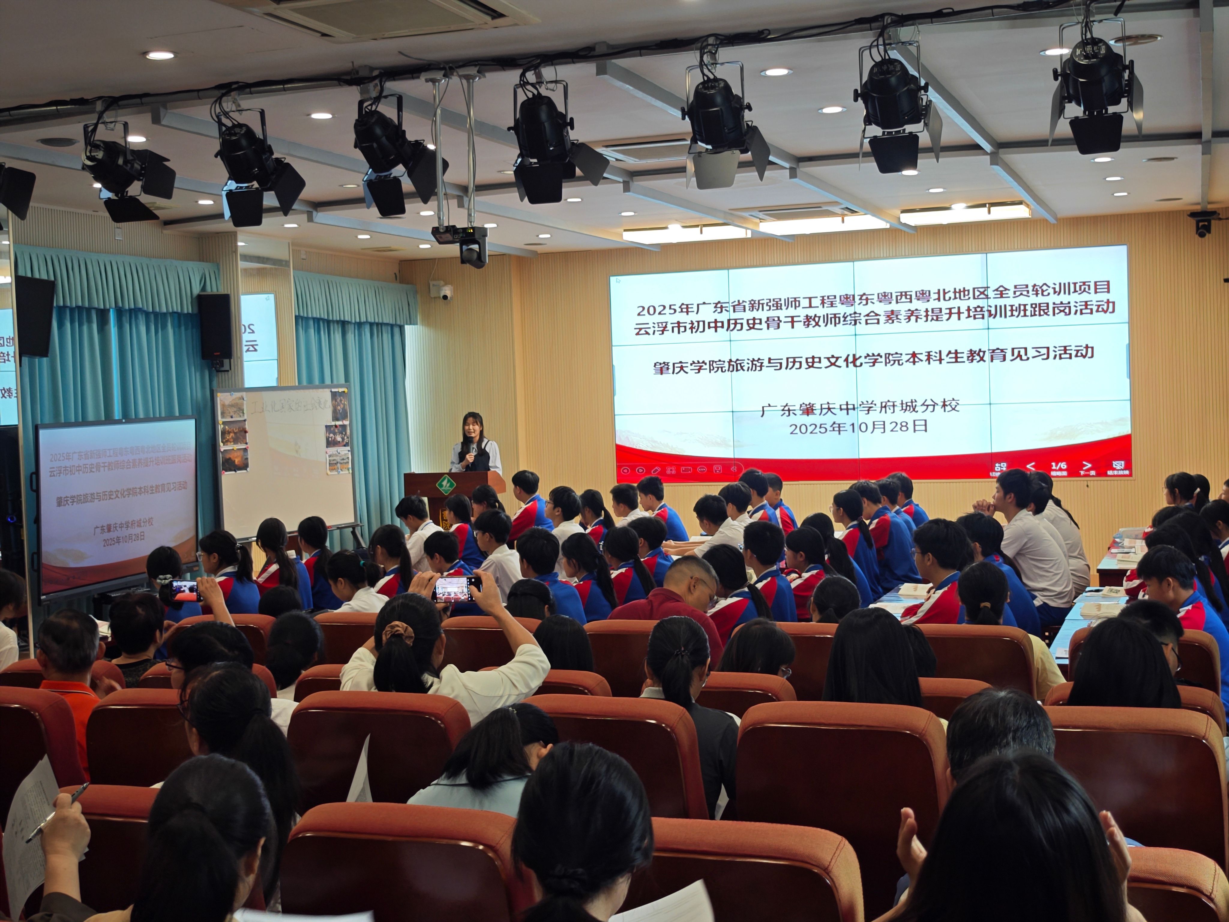集中培训于10月20日至29日有序开展,配套11月网络研修环节(76学时),构建了全方位、多层次的学习体系。课程设置紧贴教学痛点,涵盖新课标核心素养解读、新中考命题策略、跨学科教学、研学课程开发、博物馆教育融合等核心内容,同时组织参训教师前往肇庆博物馆、阅江楼及顺德、肇庆两地优质中学开展现场教学与跟岗学习,实现“学用结合、学以致用”。