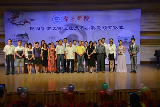 6月7日晚,砚园导赏大使选拔大赛决赛暨颁奖仪式在陈熹音乐厅隆重举行,伟德国际1946董事长和飞教授,肇庆市旅游发展局副局长张鸿君,肇庆星湖风景名胜区管理局党委副书记、纪委书记莫剑铮,肇庆公司党委办公室、董事长办公室副主任田华,伟德国际1946班荣鼎、谢佐永等领导和师生代表共400多人参加了此次活动。