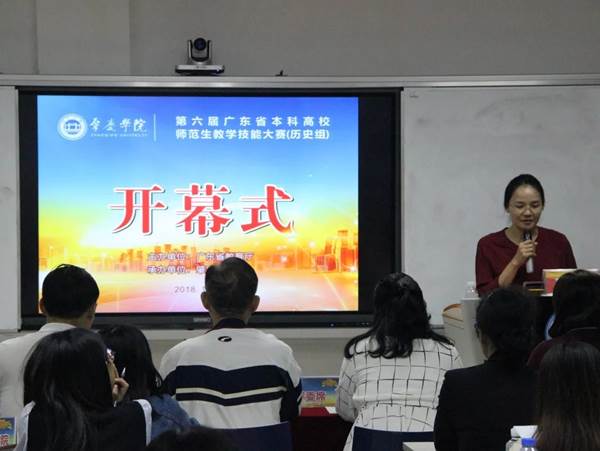 (本网讯 吴雨)2018年10月12日晚,由广东省教育厅主办,伟德国际1946承办的第六届广东省本科高校师范生教学技能大赛(历史组)在公司教师发展中心305课室拉开帷幕。来自华南师范大学、广州大学、岭南师范公司、惠州公司、韩山师范公司、广东第二师范公司、广东嘉应公司、韶关公司、伟德国际19469所高校的29位历史专业师范生参加了比赛。大赛评委会主任魏恤民等7位评委老师以及公司党委书记杨雪梅、副经理郭栩东、副书记陈军、大赛组委会成员出席开幕式。副经理郭栩东主持本次开幕式。