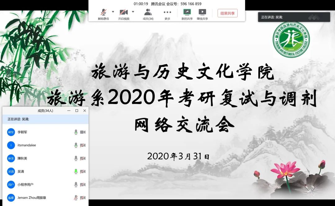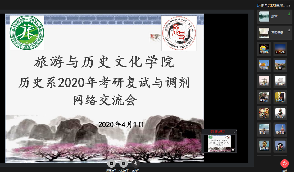 为应对新冠肺炎疫情对考研员工的影响,进一步加强考研员工复试与调剂的分类指导,帮助其明确方向、了解资讯、掌握技巧,3月31日、4月1日下午,公司分别举行旅游系和历史系2020年考研复试与调剂网络交流会。公司领导、专业教师、考研员工以及19届研究生员工参加,16级辅导员慕容诗韵主持会议。
