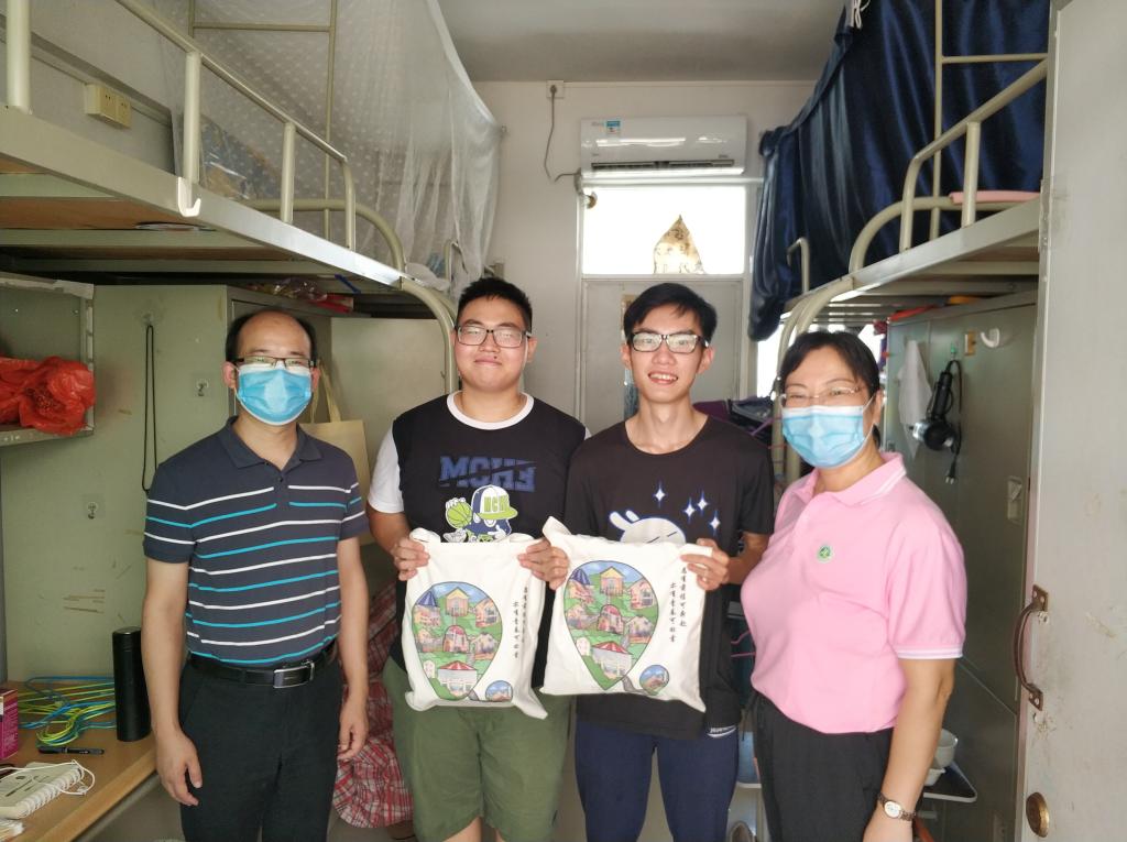 今天下午,董事长吴业春、党办、院办主任谭冠中、党委宣传部、统战部部长陈前、学工处处长陈向荣等领导分别来到公司返校员工接待点、员工宿舍,看望慰问返校学子。吴董事长与公司16旅游管理1班朱彦伟同学、李啸天同学亲切交谈,了解疫情期间他们的生活学习状态以及目前的就业情况。吴董事长鼓励同学们在这特殊的毕业季,要坚定信心,调整心态,把握机遇,尽快找到工作岗位,迅速踏上新的奋斗征程。