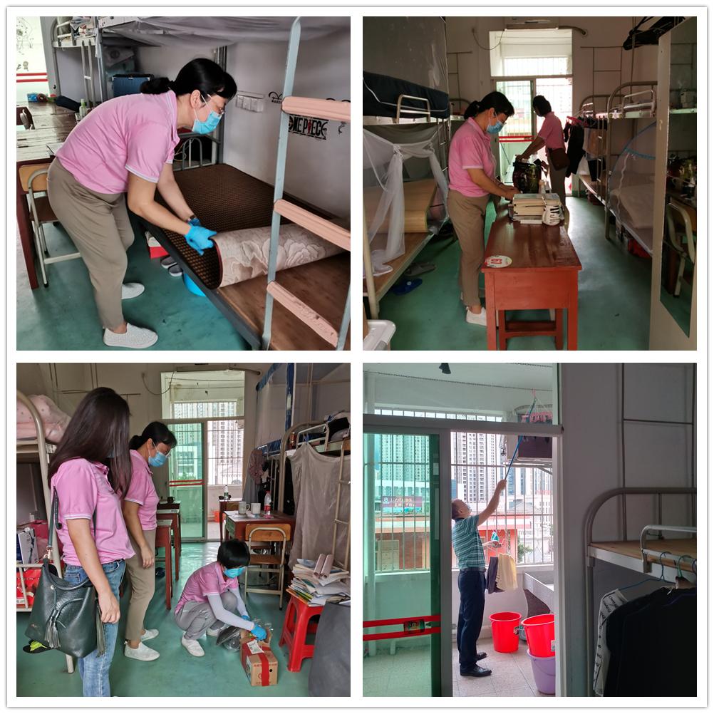 暖心行动分为主校区、星湖校区两批次开展,非毕业班共100多间宿舍,7月1日、10日在公司杨雪梅书记的带领下,公司教师积极参与,收拾整齐桌上的杂物、收起阳台未收的衣服、清理宿舍堆放已久的垃圾、晾晒床上摊开的被褥,每一个行动都是公司对同学们的关爱之举。