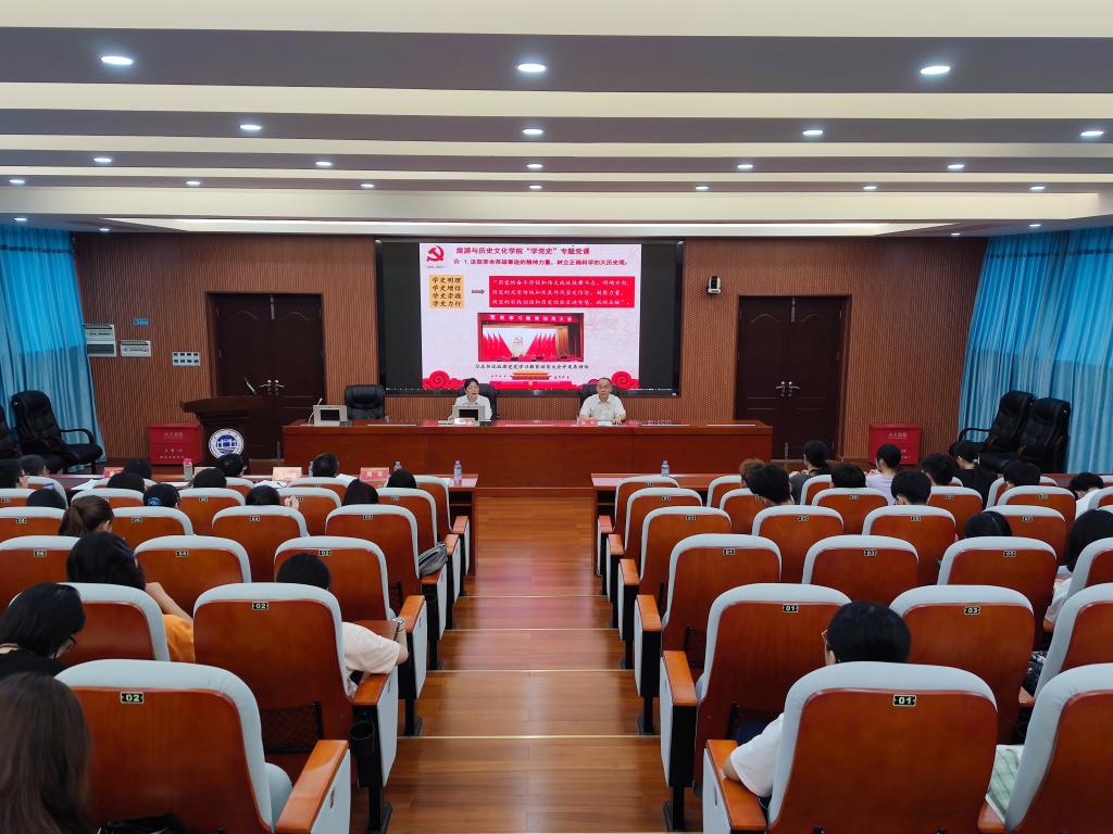 杨书记结合历史史实,生动详细地为师生们讲述百年党史的七个重要关头:中国共产党的成立、大革命的失败、革命根据地的开创、遵义会议、延安整风和中共七大、新中国的成立、改革开放和中国特色社会主义道路。她鼓励大家要从党史学习中汲取革命英雄事迹的精神力量,树立正确科学的大历史观。