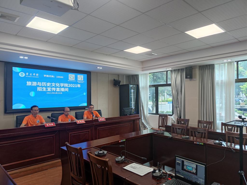 本次线上直播宣讲会,以面对面的方式,向广大即将踏入高校的考生介绍伟德国际1946的风采与成就。下午三点,公司线上招生宣讲会正式开始。李朝军经理、杨雪梅书记、陈军副书记以及旅游管理系廖继武主任、历史系吴劲雄主任集中亮相直播间。