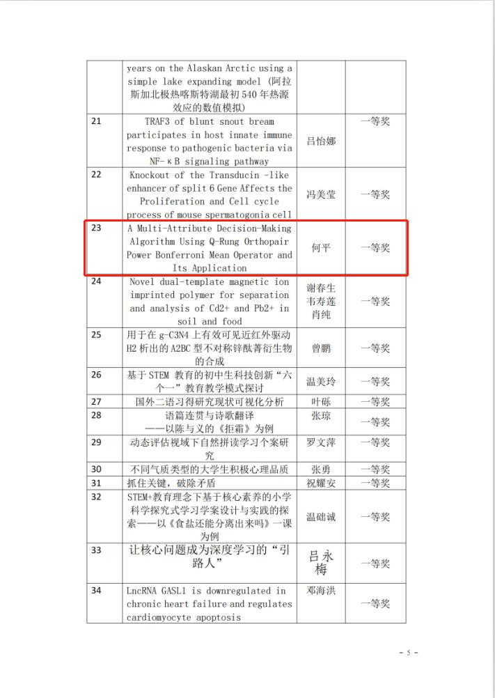 公布第十七届肇庆市自然科学优秀学术论文获奖名单,公司何平老师的论文“A Multi-Attribute Decision-Making Algorithm Using Q-Rung Orthopair Power Bonferroni Mean Operator and Its Application”荣获一等奖!