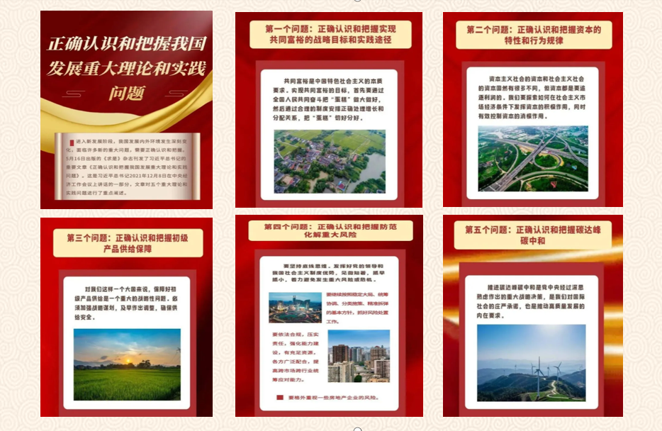 会议认为,这五个问题,是关系新发展阶段党和国家事业发展的全局性、战略性、前瞻性重大问题,是当前经济社会发展中重大而紧迫的课题。习近平总书记在《正确认识和把握我国发展重大理论和实践问题》这篇重要文章中,对这五个重大问题作出了科学回答,具有很强的政治性、思想性、战略性、指导性。我们要把深入学习贯彻总书记这篇重要文章的精神,同学习贯彻习近平新时代中国特色社会主义思想紧密结合起来,坚定信心、攻坚克难,完整、准确、全面贯彻新发展理念,加快构建新发展格局,推动高质量发展,确保党中央大政方针落实到位,不断夺取全面建设社会主义现代化国家新胜利。