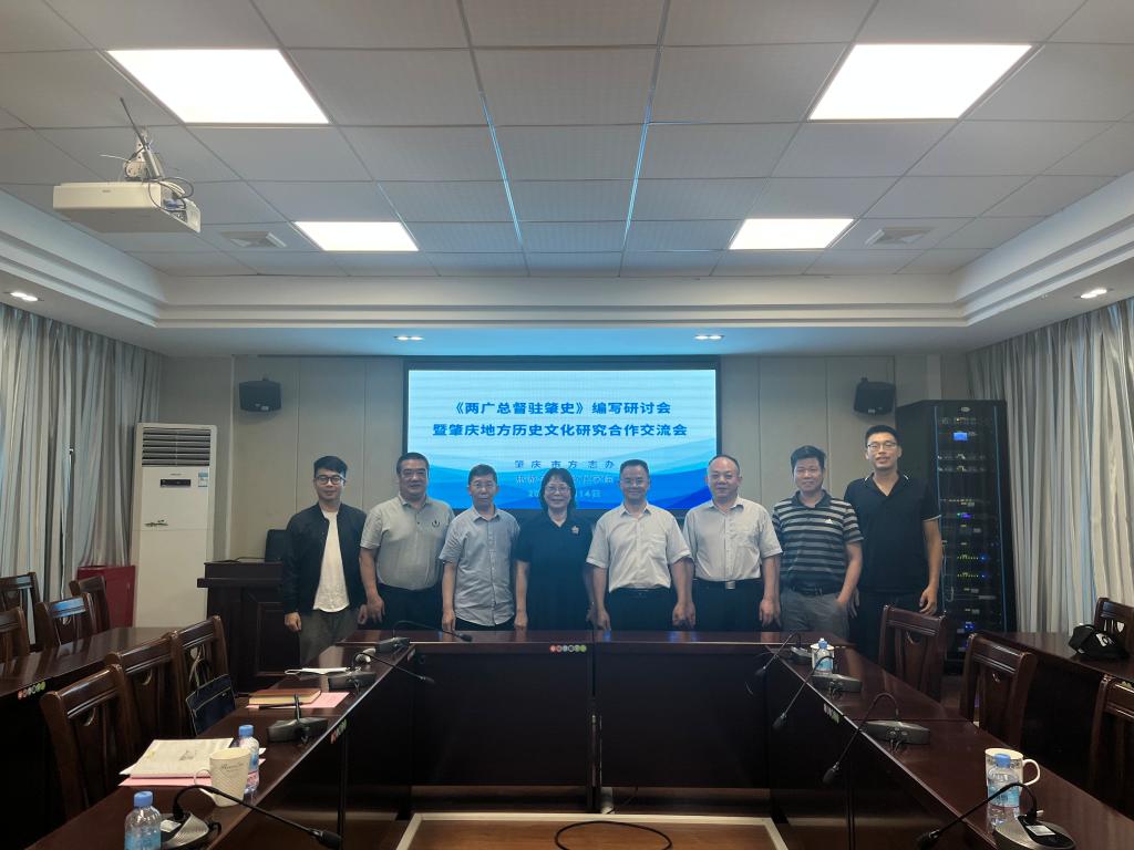 6月14日,肇庆市委党史研究室(市地方志办)周益成主任、刘建勋副主任、陈军强科长莅临公司出席《两广总督驻肇史》编写研讨会暨肇庆地方历史文化研究合作交流会。公司党委书记杨雪梅、副经理周军、学术委员会主任李怀顺教授以及历史系副主任严智德博士、阮宏博士参加。双方深入开展座谈交流,探索校地合作新途径,共同为服务肇庆地方历史文化研究献计出力。周军副经理主持会议。