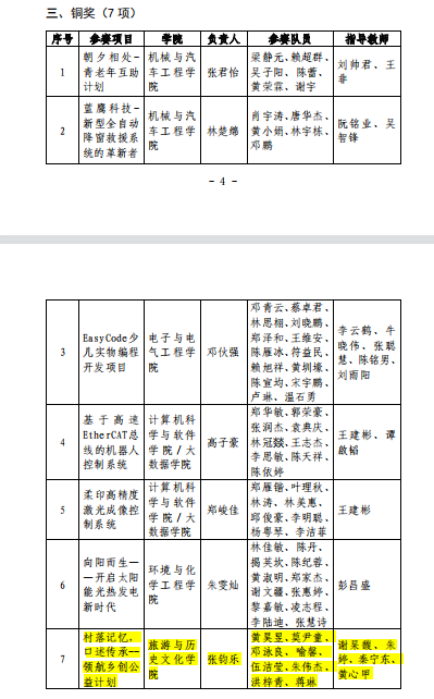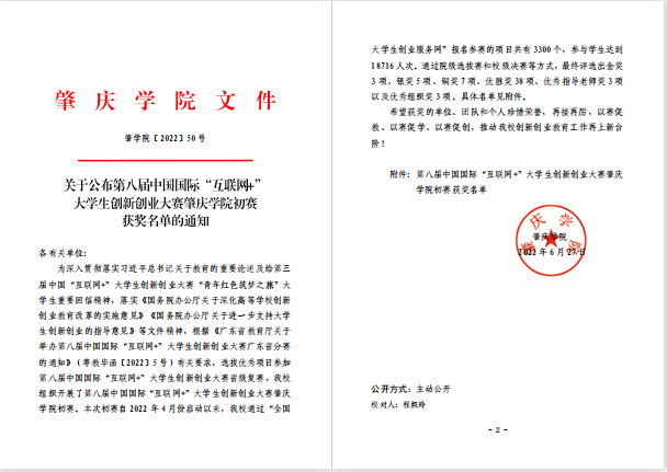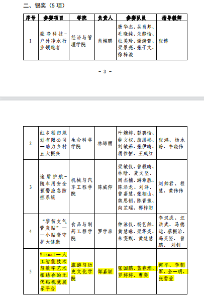 其中,何平、李朝军指导的《Visual—人工智能技术与数字艺术相结合的无代码视觉展示平台》项目获得银奖;谢杲馥、朱婷、秦宁东、黄心甲指导的《村落记忆,口述传承--领航乡创公益计划》项目获得铜奖;童晓宁指导的《乐高回收——经济实惠又环保》项目,周振雄指导的《咖啡庄园研学之旅--肇庆爱丽丝庄园》项目,鲁瑞虎、李朝军指导的《中医药文化创意特色旅游产品开发——以肇庆佛手为例》项目,鲁瑞虎、朱婷指导的《捷享停车— —城市智慧停车生态系统》项目获得优胜奖。