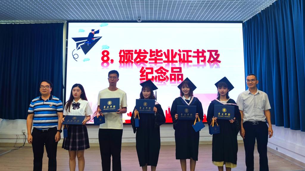 随后,吴肖淮副经理为同学们正冠拨穗,并送上真挚的毕业祝福。两院领导、老师为毕业生们颁发毕业证书、学位证书,并赠送毕业礼物,祝愿每一位毕业学子前程似锦。49名毕业生在分教点的悉心培养下顺利毕业,即将告别母校,开启新的人生篇章。