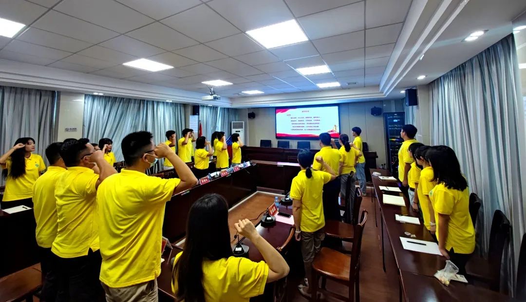 仪式上,带队教师代表朱婷表示,要切实担负起责任,抓细抓实抓好活动的全过程,确保活动开展平稳有序、扎实有效。仪式上,马舒洁为出征队伍进行授旗,全体志愿者集中宣誓。老员工志愿者代表许莉莹同学表示,要按照公司要求在暑期“三下乡”社会实践活动中受教育、增知识、长才干、展形象。