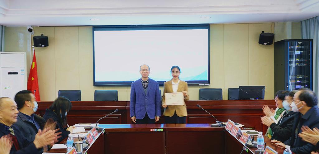 (肖光明老师为获得教学竞赛二等奖的老师颁发证书)