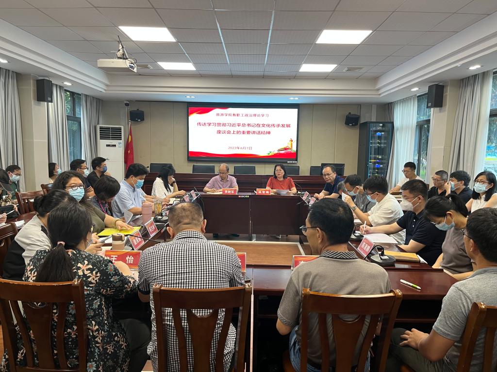 6月7日,伟德国际1946组织开展政治理论专题学习,传达学习习近平总书记在文化传承发展座谈会上的重要讲话精神。党委书记杨雪梅主持,李朝军经理、郭栩东副经理、周军副经理以及党支部书记、系部主任以及全体教师参加。
