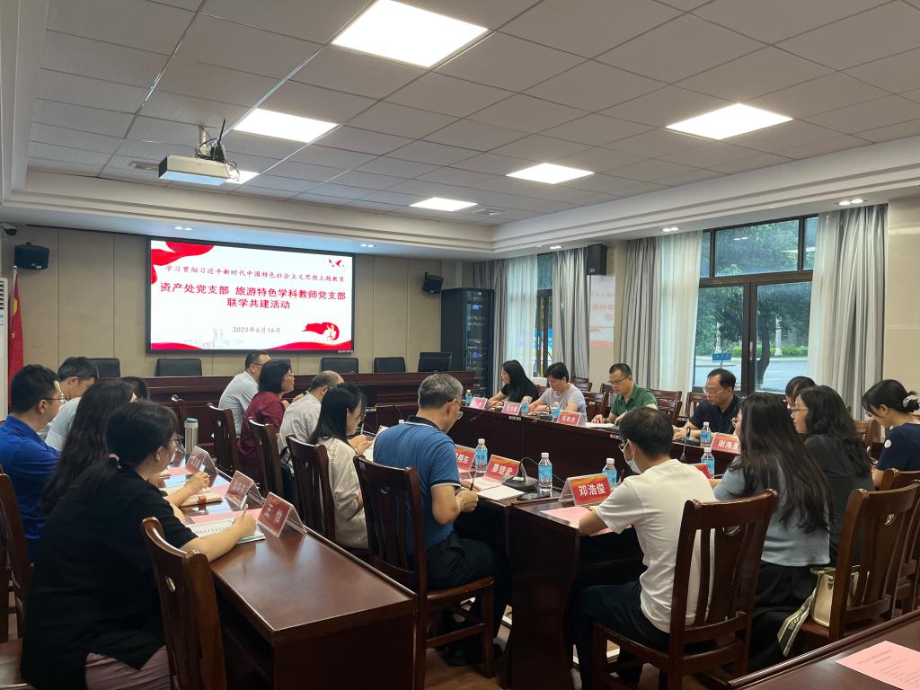 为深入开展学习贯彻习近平新时代中国特色社会主义思想主题教育,强化支部共建工作成效,以扎实的作风和有力的举措落实立德树人根本任务,6月16日,资产处党支部联合旅游特色学科教师党支部开展联学共建活动。资产处处长毛致光、副处长赵金,伟德国际1946经理李朝军、副经理郭栩东,旅游系党支部书记廖继武博士、地理系主任童晓宁博士以及资产处党支部、旅游特色学科教师党支部全体党员参加。党委书记杨雪梅主持。