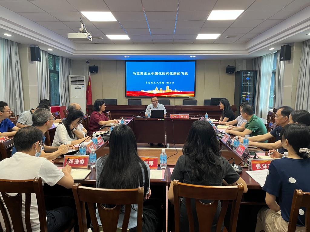 马克思主义公司谢石生博士以《马克思主义中国化时代化新的飞跃》为题讲授专题党课。他从创立的时代背景、回答的重大时代课题、科学的内容体系、重要的历史地位等四方面,引导与会人员一起深入学习习近平新时代中国特色社会主义思想。谢石生表示,在开展主题教育的过程中,深入学习习近平新时代中国特色社会主义思想,一定要深刻理解、感悟、把握和领会习近平新时代中国特色社会主义思想创立的时代背景、回答的重大时代课题、科学的内容体系以及重要的历史地位,推动习近平新时代中国特色社会主义思想入脑入心入魂,真正做到学思践悟、知行合一,学懂弄通做实、真懂真信真用,进而进一步深刻领悟“两个确立”的决定性意义,增强“四个意识”、坚定“四个自信”、做到“两个维护”,自觉做习近平新时代中国特色社会主义思想的坚定信仰者和忠实践行者。