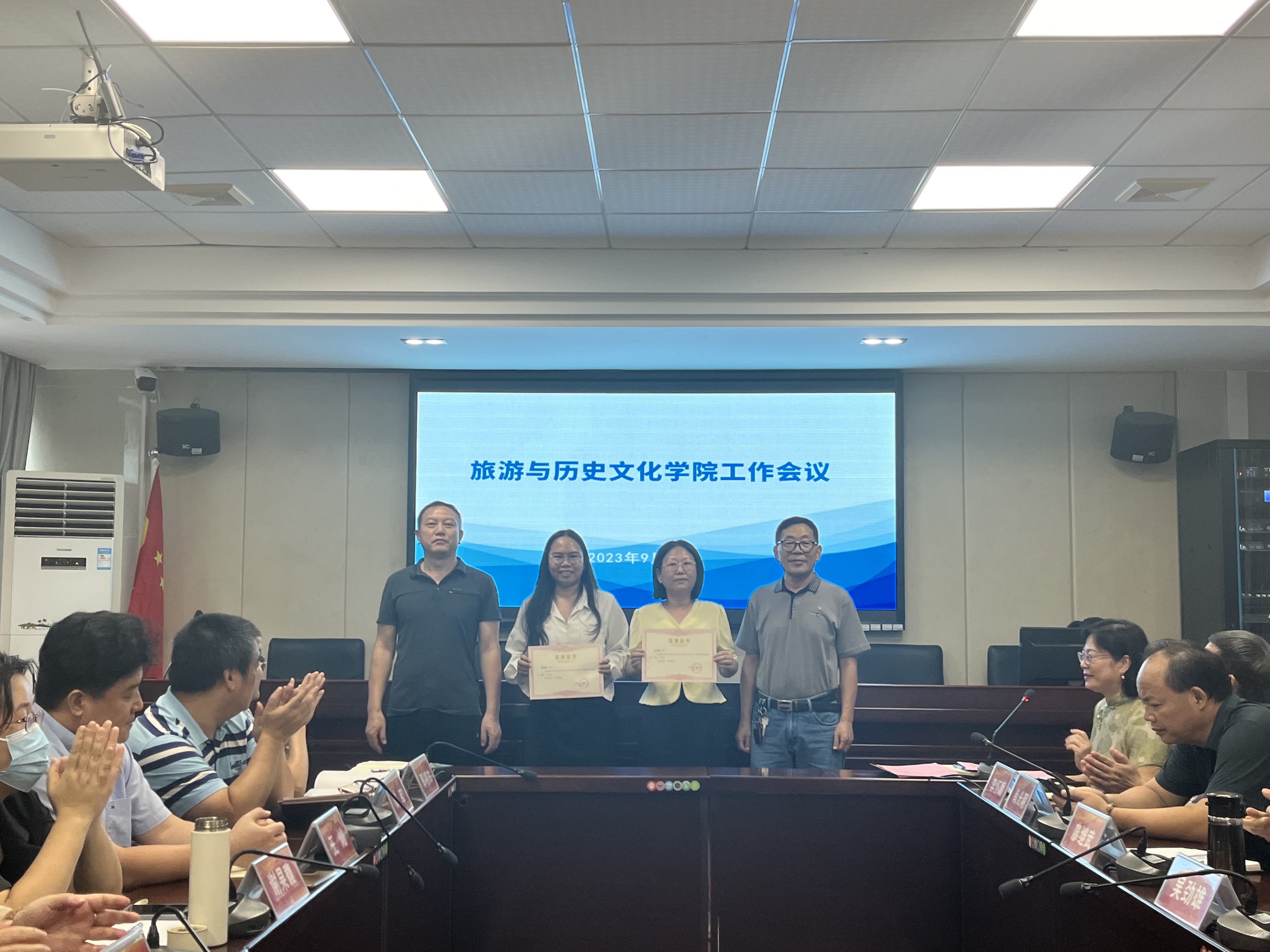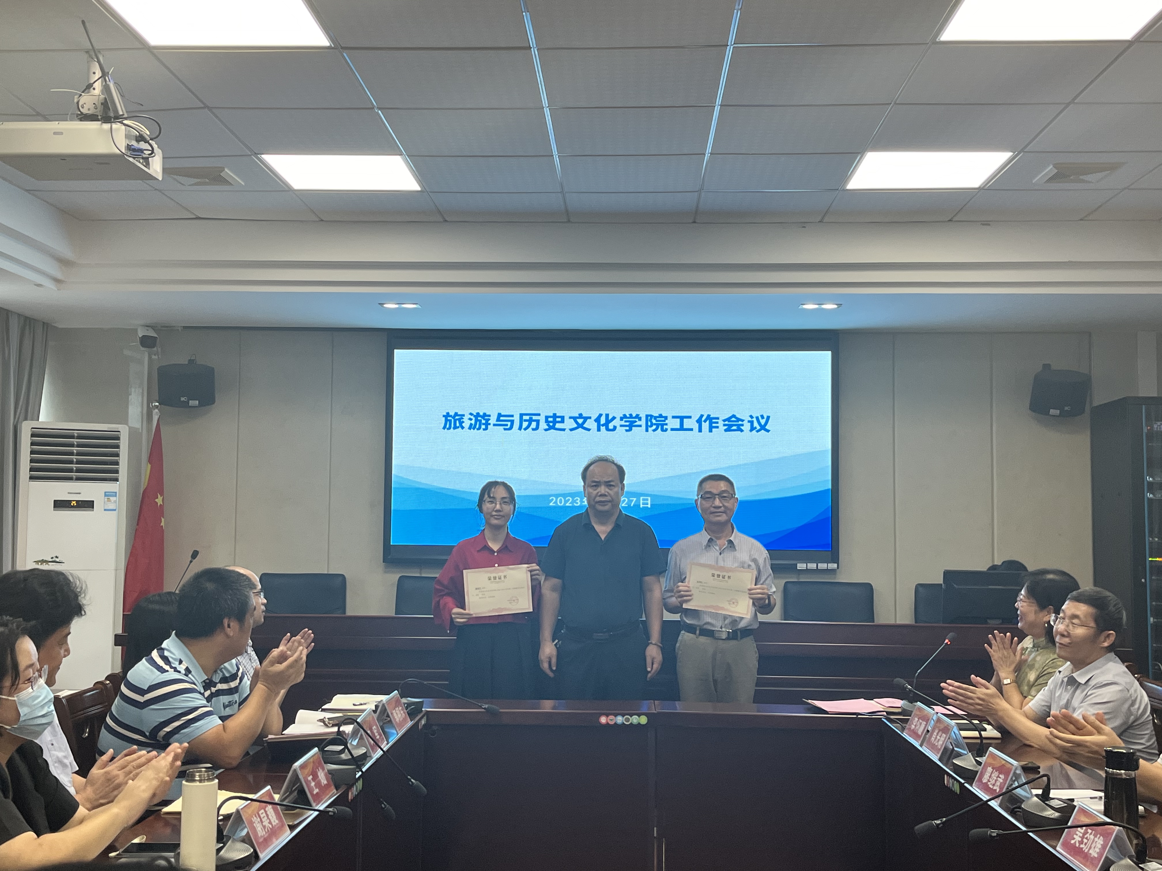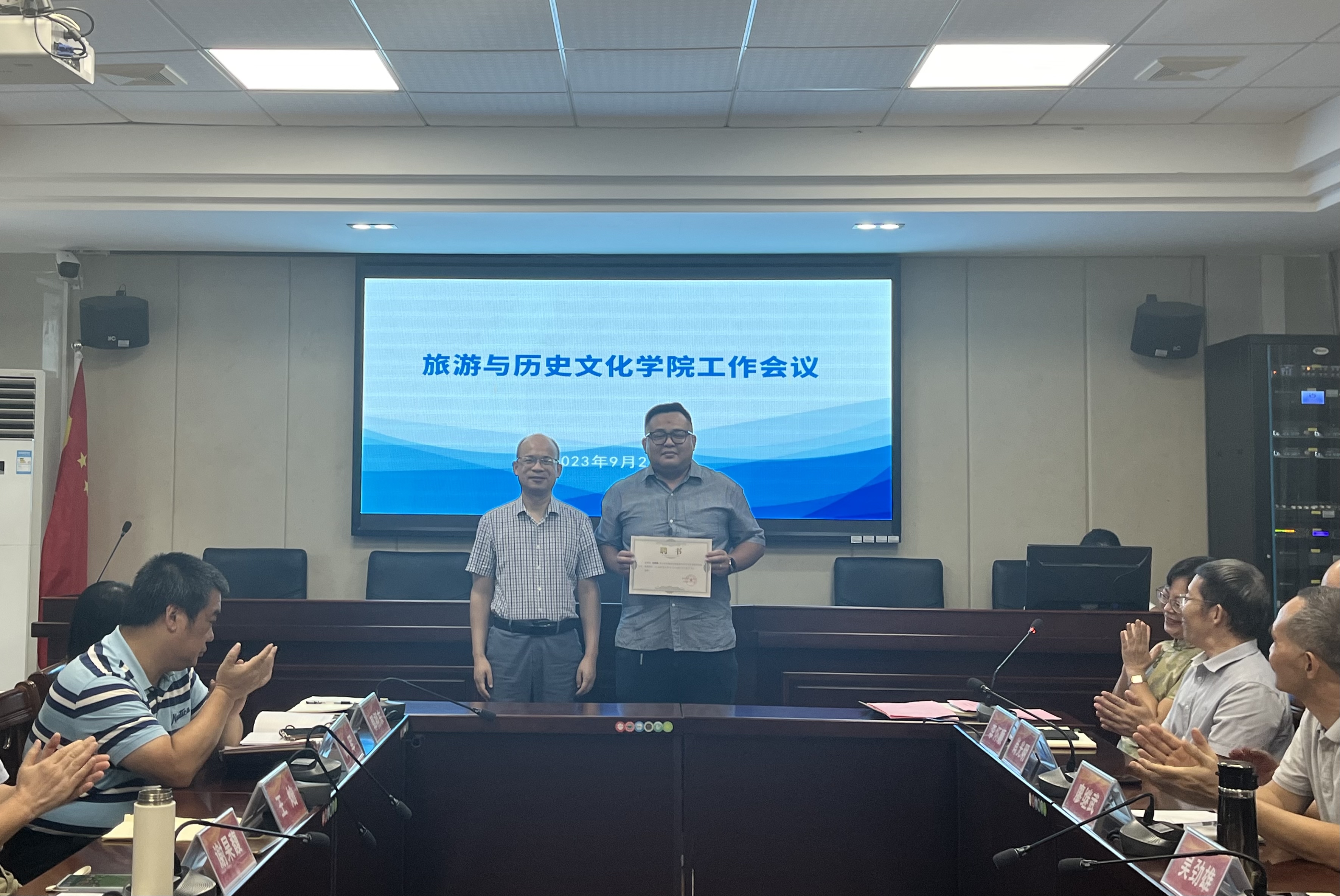 会议的第三个环节,聘任刘晓聪博士为历史系主任,李朝军经理为刘晓聪博士颁发聘书。