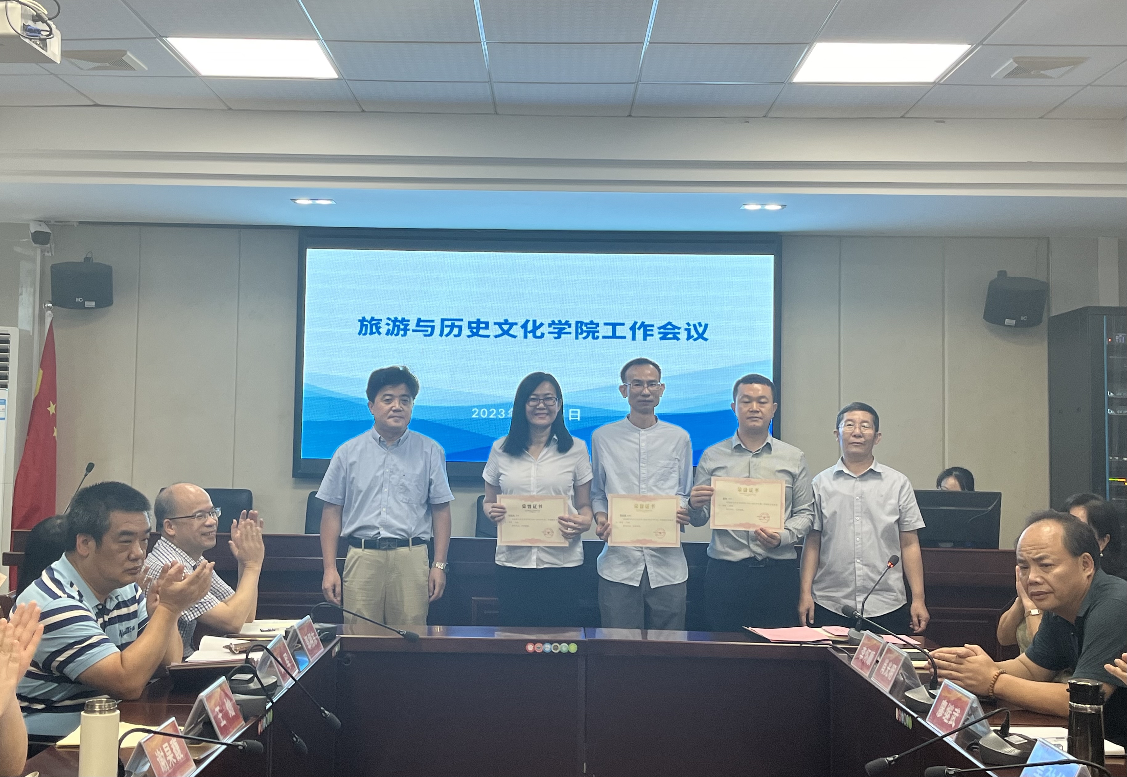 会议的第二环节,是为2022-2023第二学期的公司教学竞赛奖获奖老师们颁发荣誉证书。2022-2023学年第二学期,公司以提升应用型人才培养质量为根本,突出教学工作中心地位,人才培养质量稳步提高,全院教工积极投身人才培养、教学改革和教育研究,涌现一批先进典型,经公司教学委员会评审,党政联席会议研究,对教学竞赛和员工评教取得优异成绩的教师予以表彰。具体名单如下:
