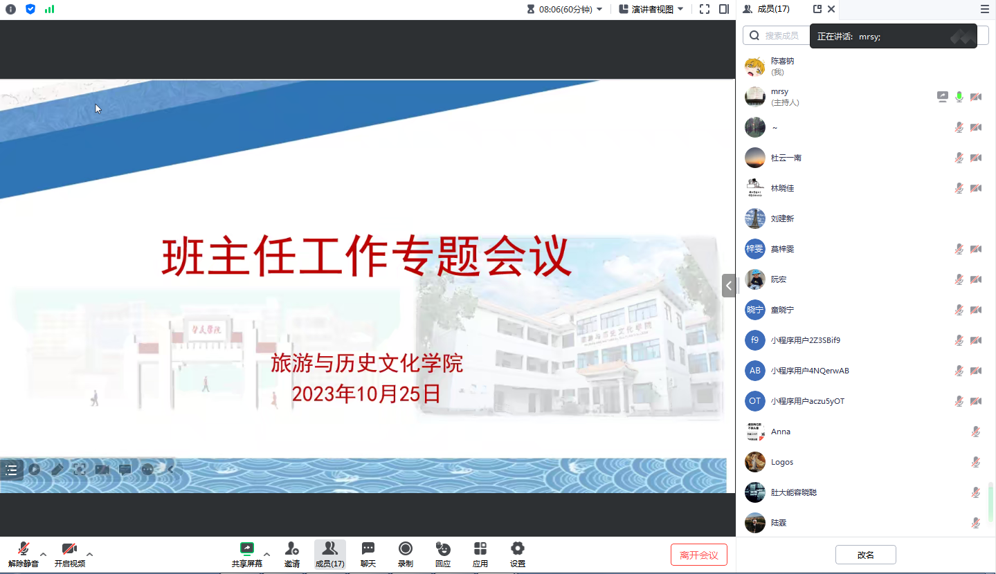 党委书记杨雪梅对新学年开学以来员工管理工作进行了总结,对全体班主任长期以来积极参与员工管理工作表示感谢,并对近期员工管理工作做了具体安排部署。