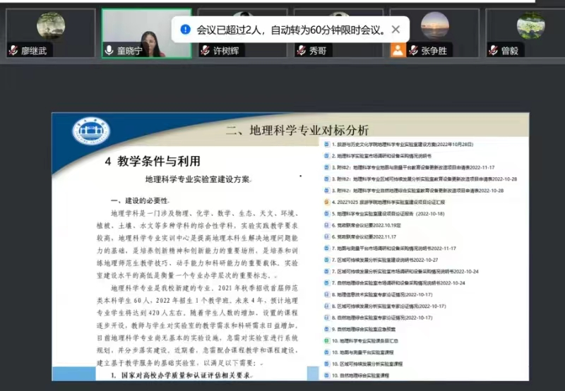 近日,伟德国际1946举行地理科学专业新增学士学位授予工作专家论证会。华南师大张争胜教授、岭南师院尚志海教授、韶关公司许树辉教授、肇庆市教育局吴毓秀教研员、公司教学督导与评估中心曾毅教授等五位校内外专家,旅游公司副经理廖继武、地理科学系主任童晓宁以及地理科学系骨干教师通过线上线下相结合的方式共同参加。