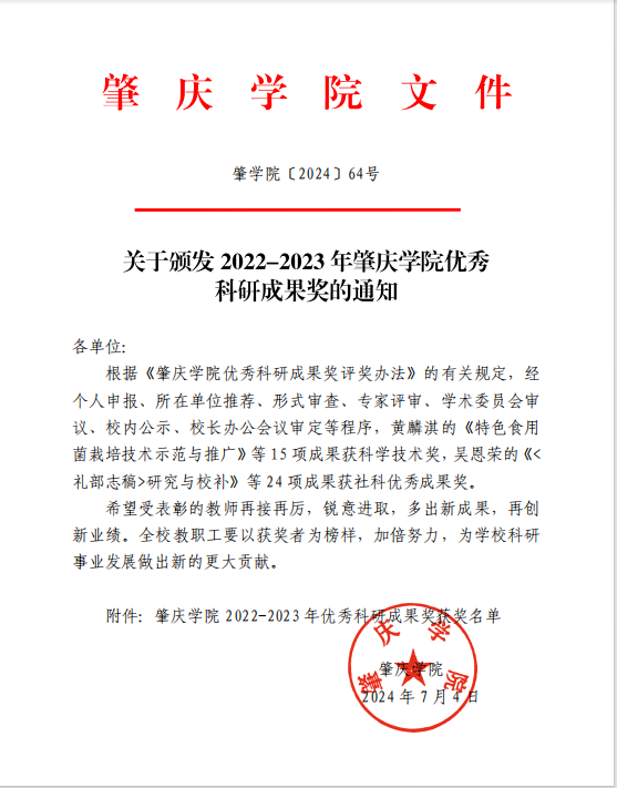 近日,公司公布伟德国际19462022-2023年优秀科研成果奖获奖名单,公司多位老师获奖: