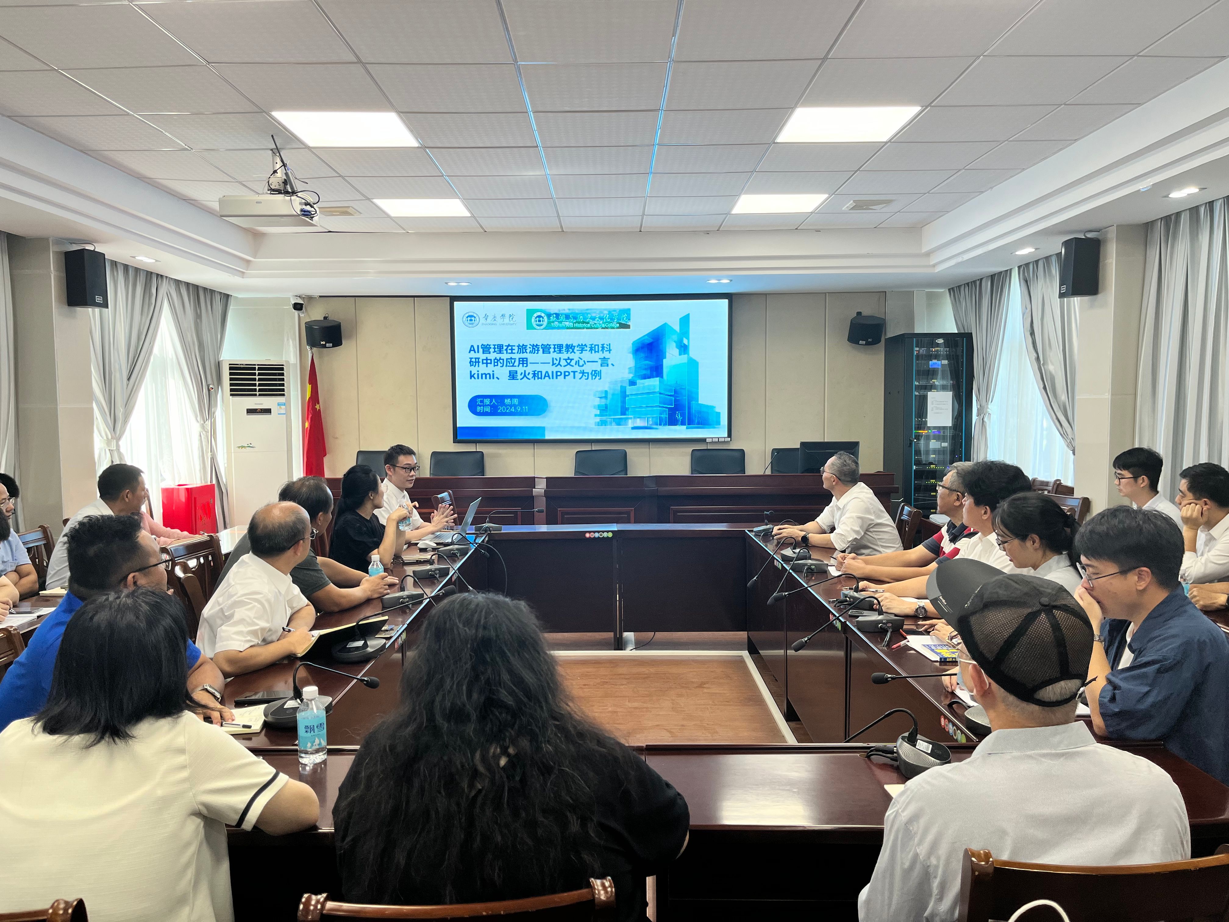 会上,旅游系杨阔博士、历史系蔡群博士、地理科学系郑壮鹏博士结合专业特点,分别分享了AI技术在课程设计和教学实践中的多方面应用。随后,与会教师围绕数字化公司产品改革和数字化赋能课堂教学进行了热烈讨论,都表示愿意在教学实践中尝试新技术,努力提升课堂教学质量。