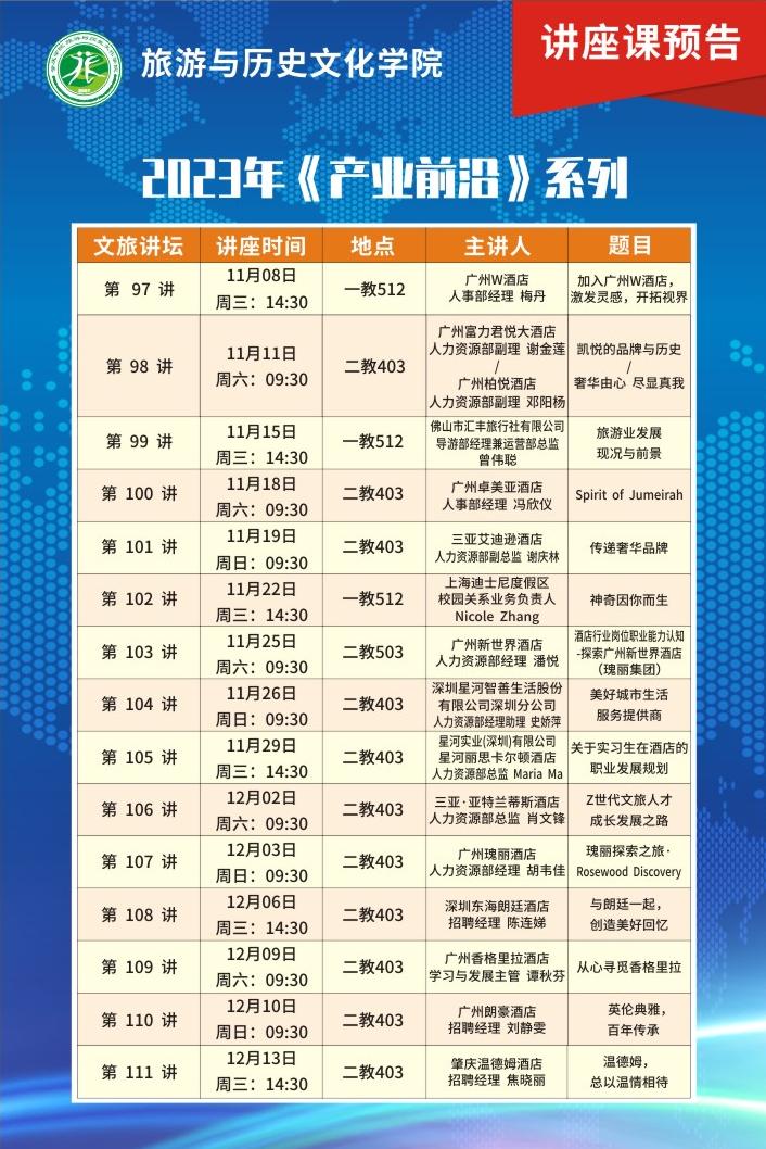 文旅讲坛(产业前沿系列)第97到111讲预告