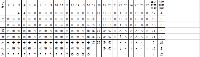 符号说明:※理论教学 ×假期 ⊙考试 ★国防教育 ♀毕业论文(设计)