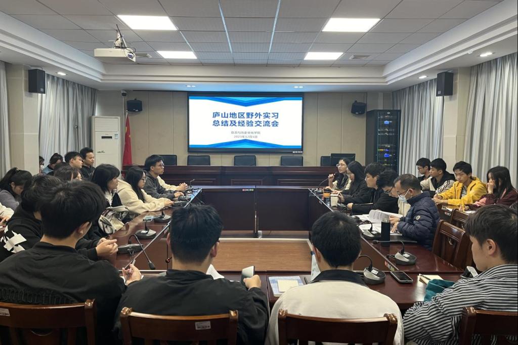 2023年12月1日下午,地理科学系召开庐山地区野外实习总结及经验交流会。地理科学系主任童晓宁、地理科学系教师、21级地理科学1班全体员工及22级和23级员工代表参加。童晓宁主持会议。