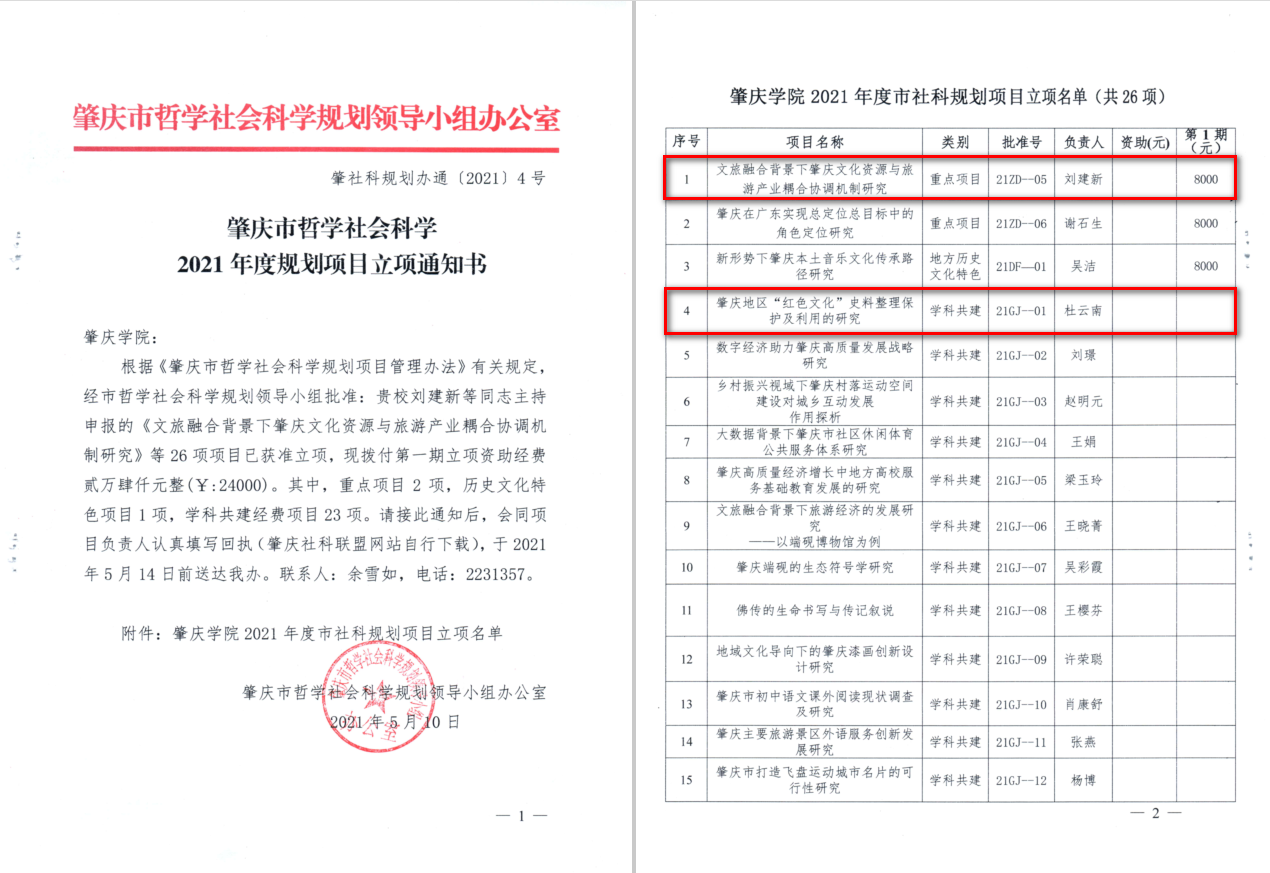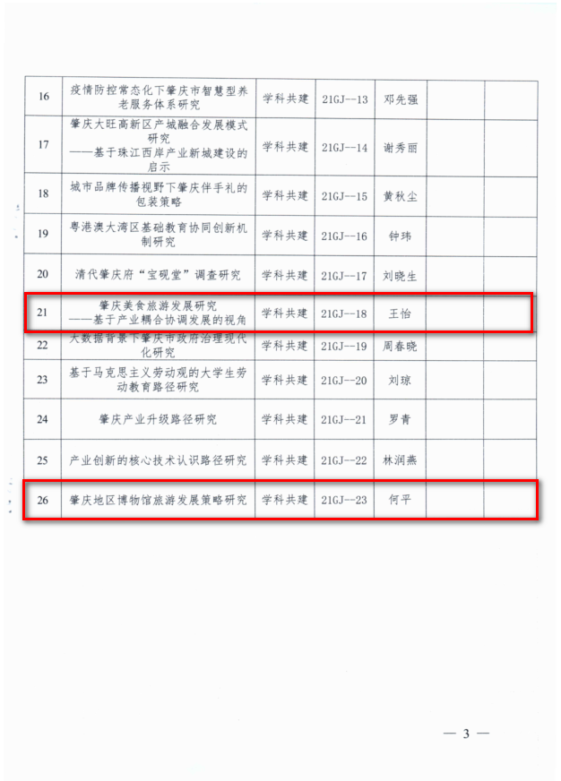 、刘建新:《文旅融合背景下肇庆文化资源与旅游产业耦合协调机制研究》(重点项目)