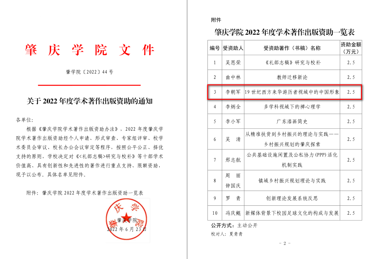 近日,《伟德国际19462022年度学术著作出版资助》名单公布。公司李朝军经理撰写的《19 世纪西方来华游历者视域中的中国形象》荣获立项,该专著因其显著的理论意义和应用价值获得了专家们的一致好评。
