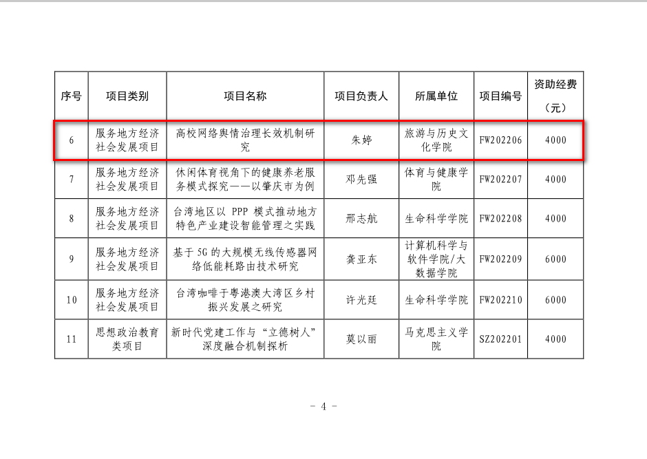 3、朱婷:《高校网络舆情治理长效机制研究》(服务地方经济社会发展类项目)