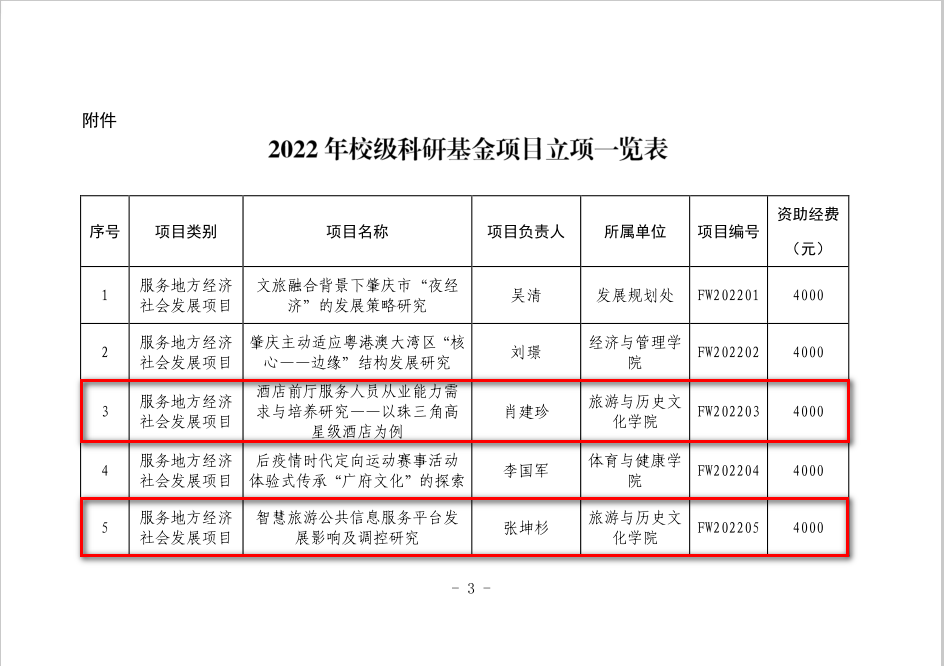 1、肖建珍:《酒店前厅服务人员从业能力需求与培养研究——以珠三角高星级酒店为例》(服务地方经济社会发展类项目)