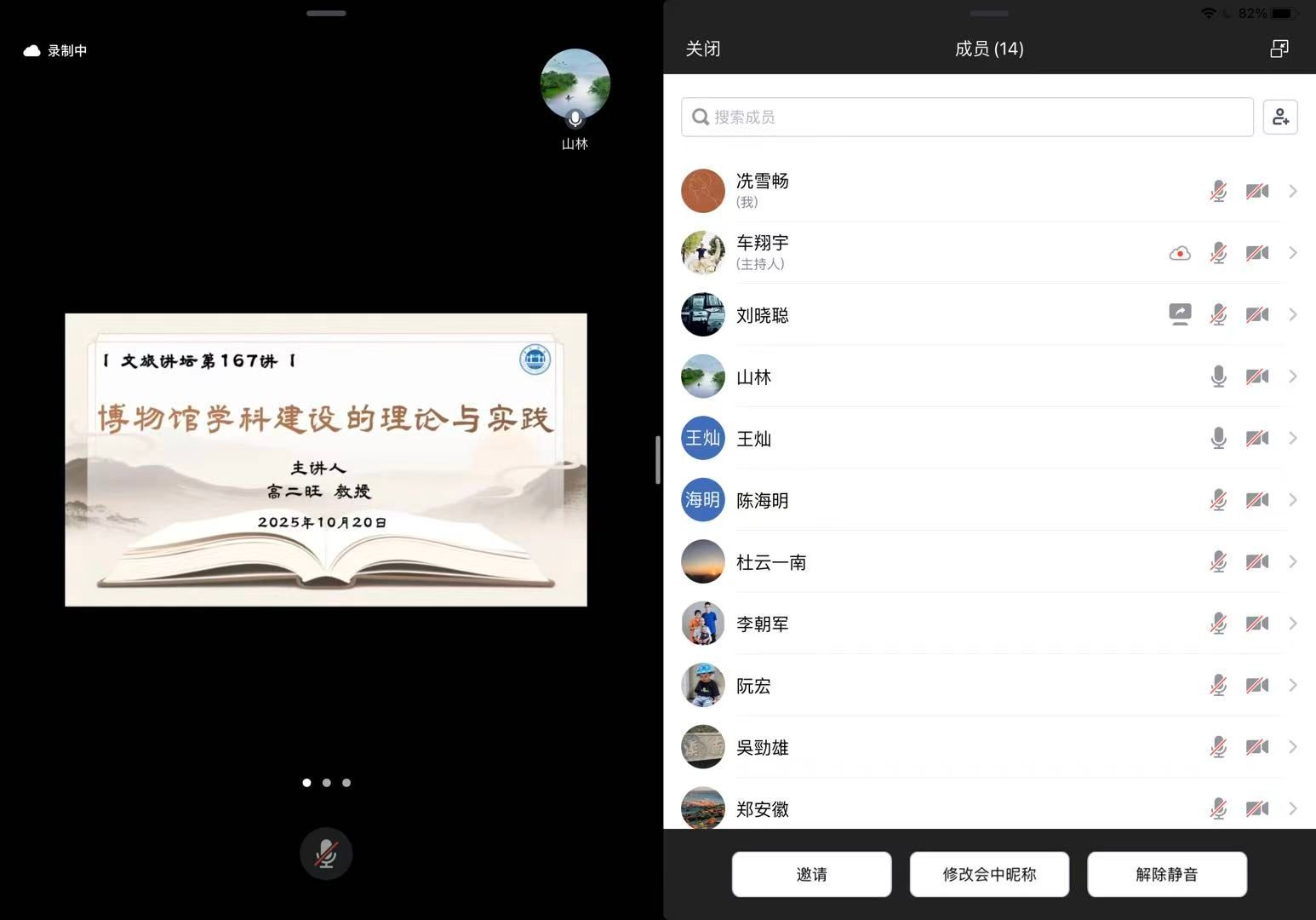 为进一步推动公司博物馆团队建设,扎实做好专业硕士点申报工作,10月20日晚,公司特邀南阳师范公司历史公司经理高二旺教授通过线上方式,开展了一场题为《博物馆团队建设的理论与实践》专题研讨会。公司经理李朝军、副经理王灿及相关专任教师参与研讨。