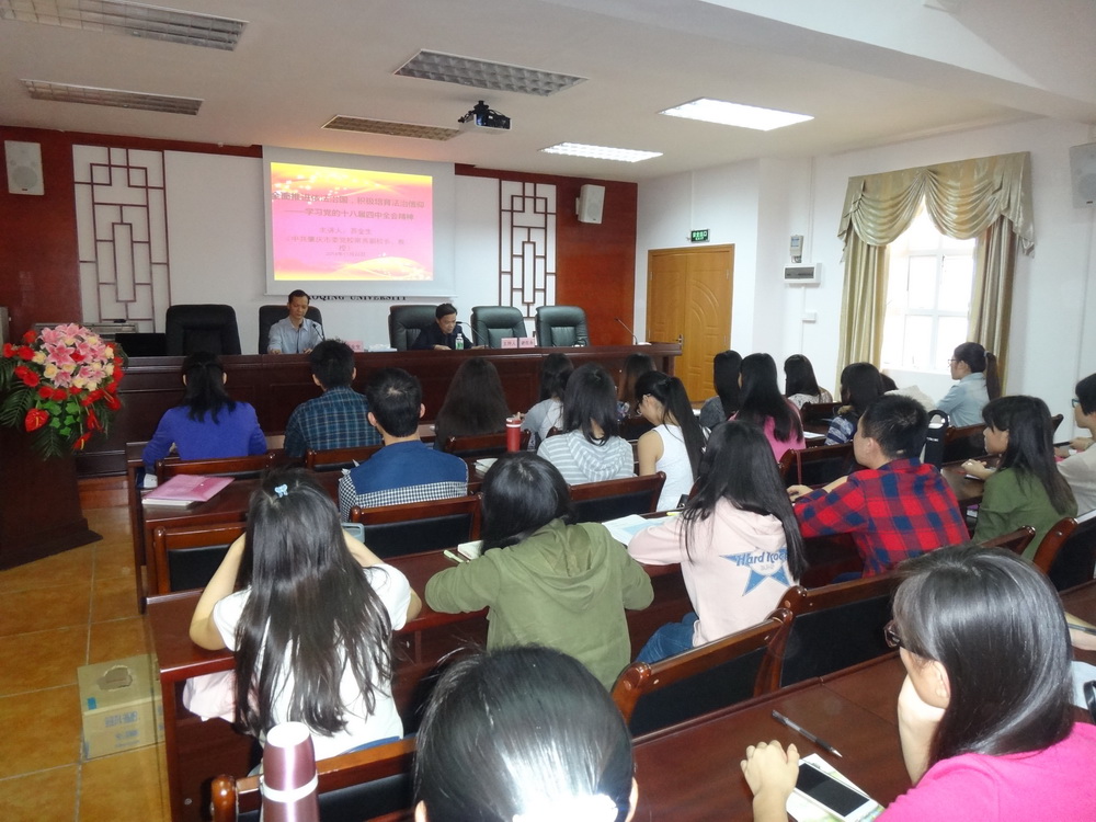 11月26日下午,公司邀请中共肇庆市委党校常务副董事长苏金生教授,为公司师生党员、入党发展对象举办了一场关于“全面推进依法治国,积极培育法治信仰——学习党的十八届四中全会精神”的专题讲座。
