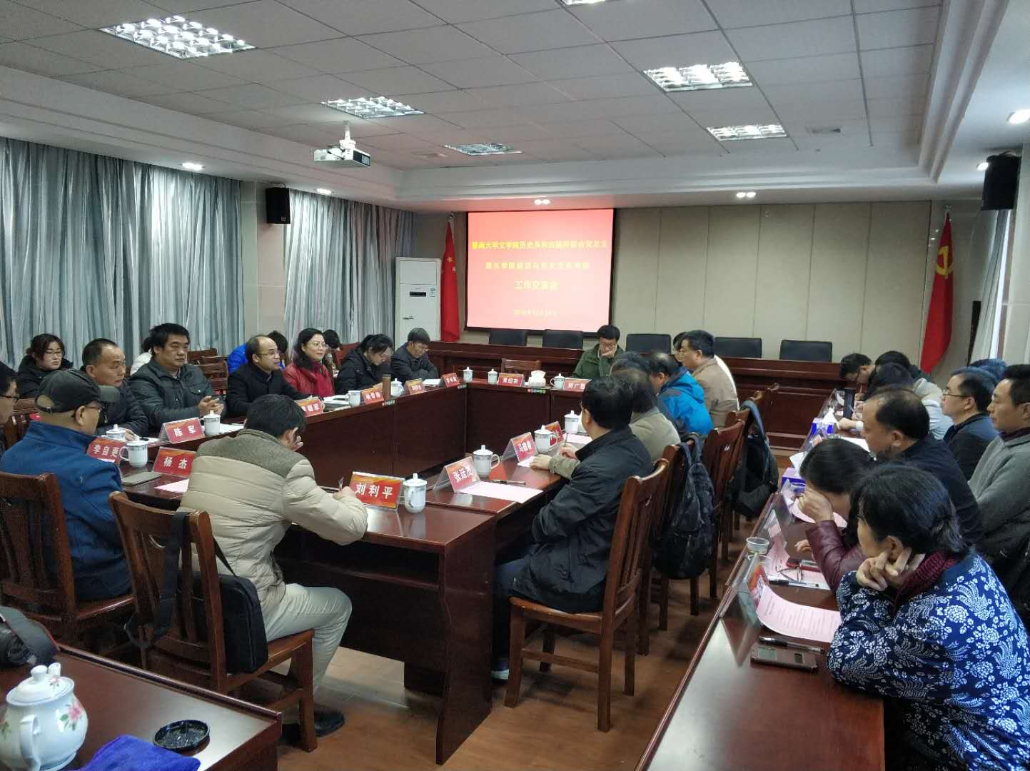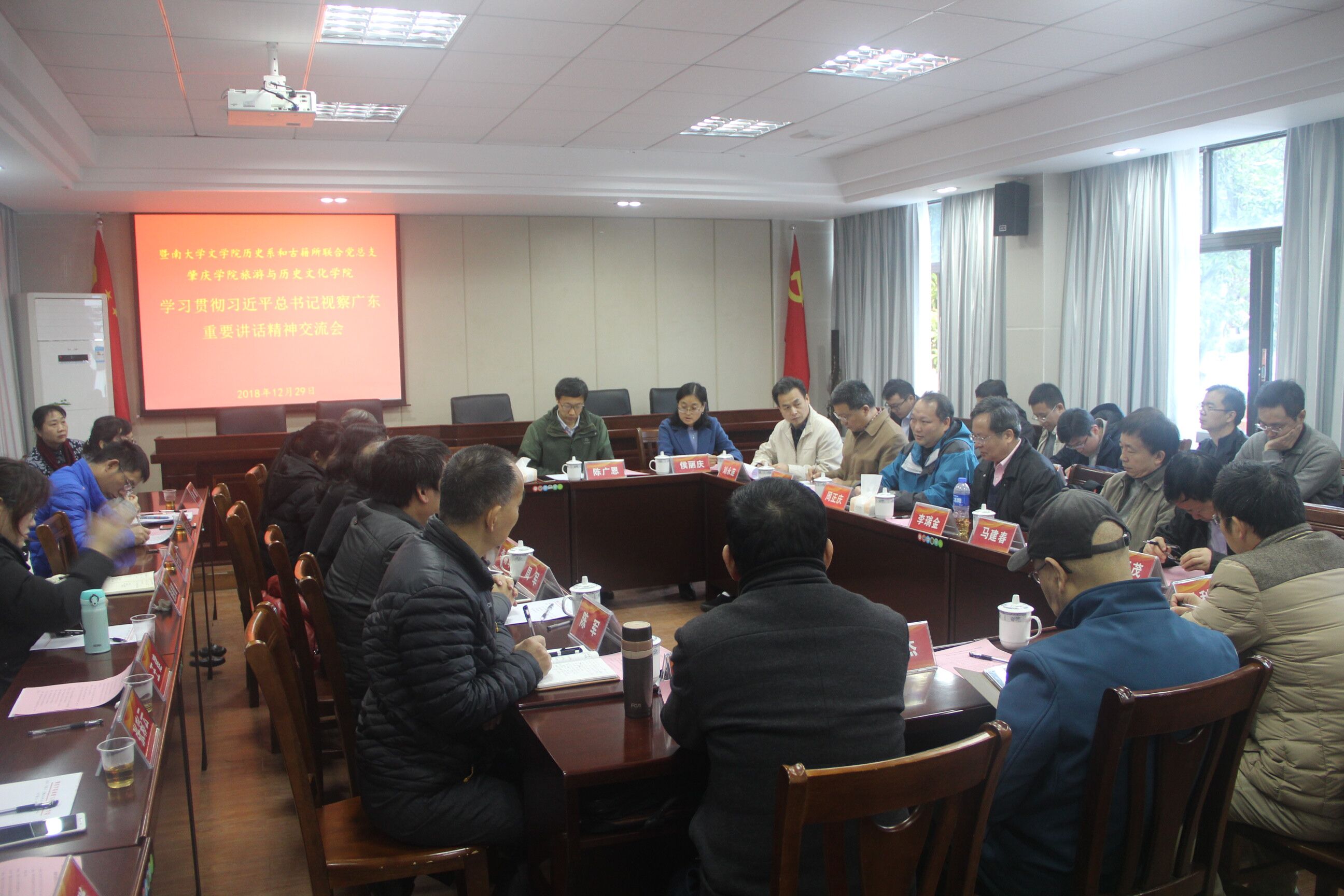 12月29日,暨南大学文公司党委副书记李瑞金、历史系和古籍所联合党总支书记周正庆带领中外关系研究所、历史地理研究中心、古籍所的专家、教授一行18人莅临伟德国际1946联合共同深入学习习近平总书记重要讲话精神并开展党建工作和历史团队建设工作交流。公司领导班子以及历史系全体教师参加交流活动。
