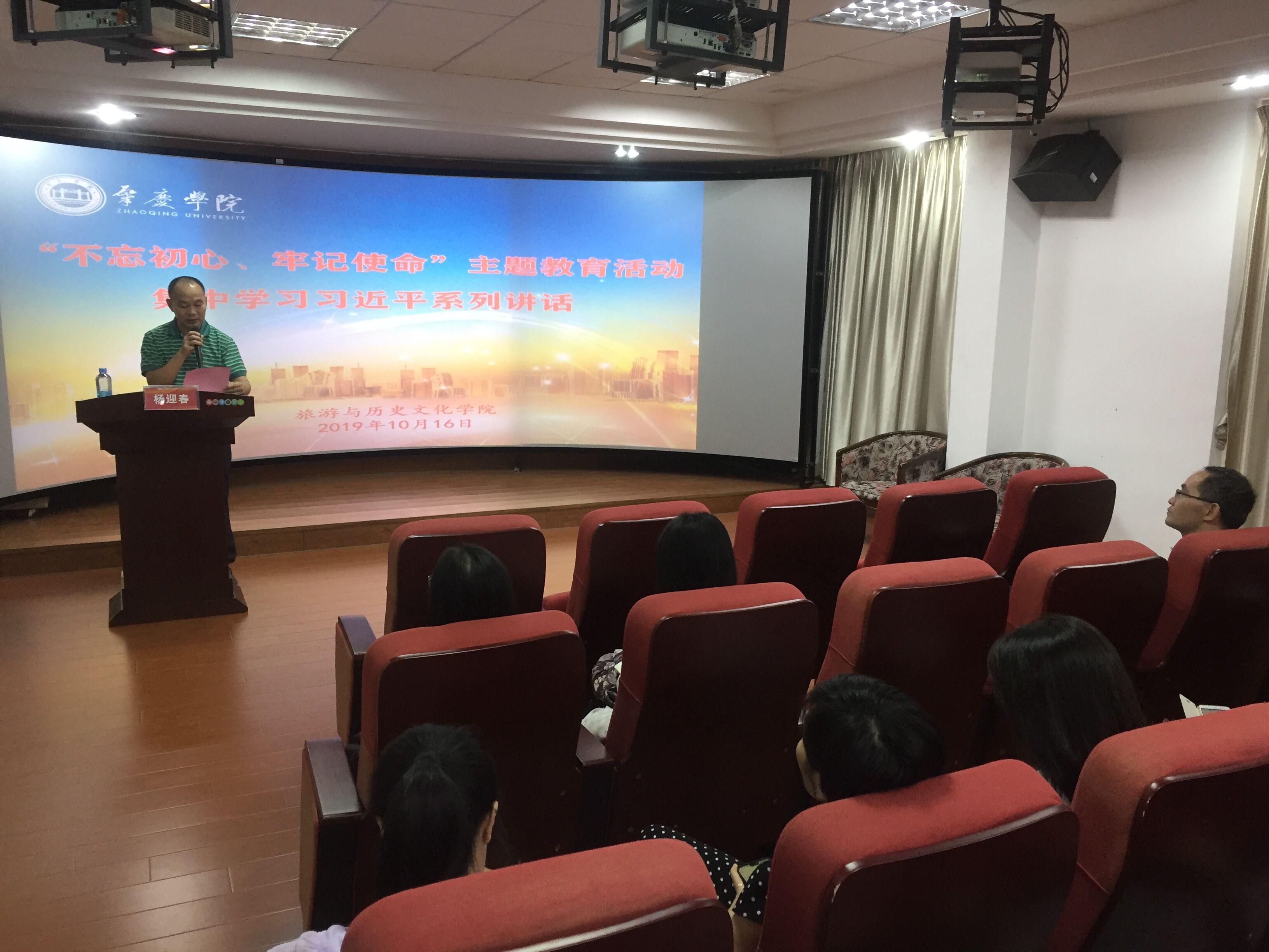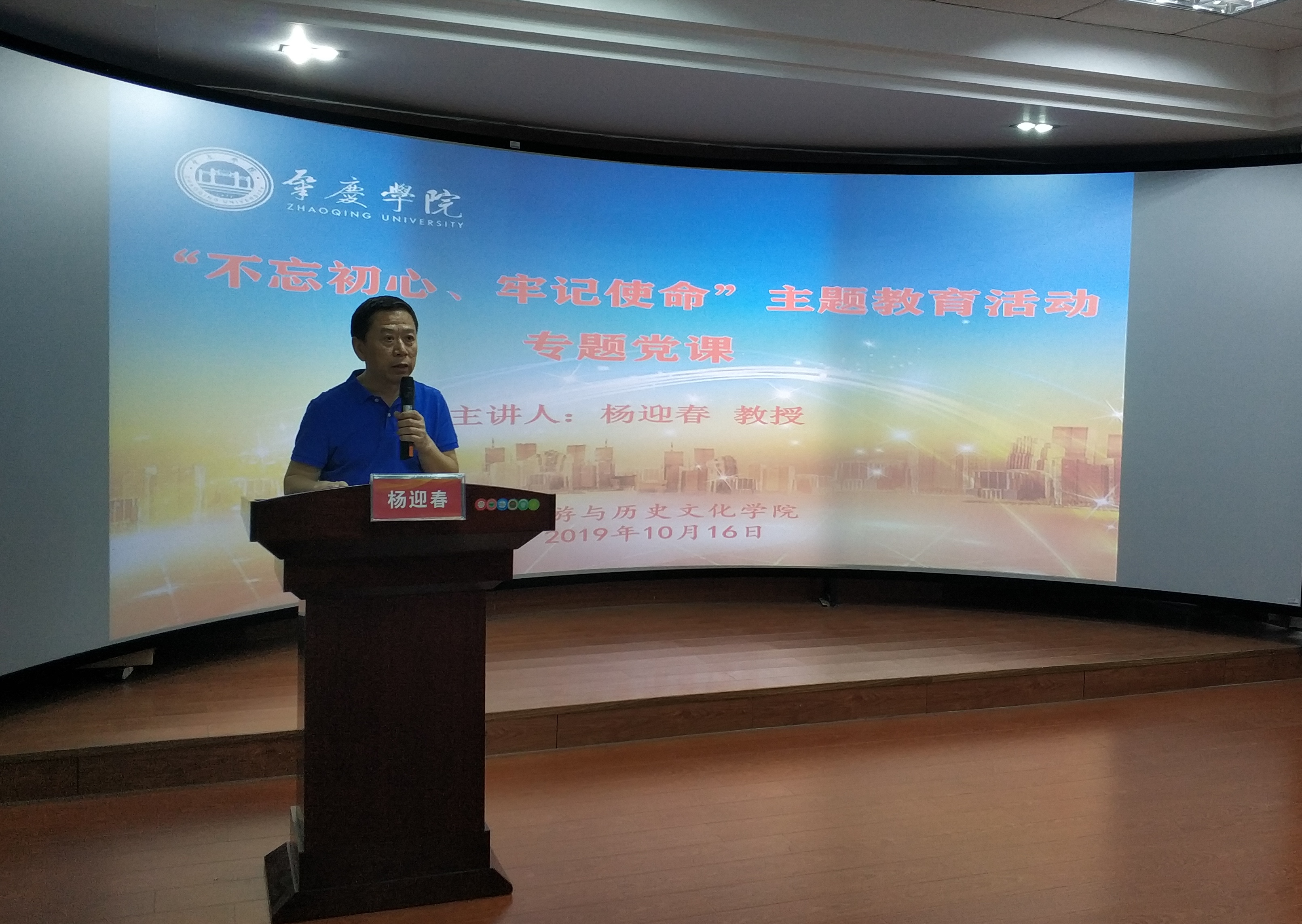 首先是特邀公司“不忘初心、牢记使命”主题教育督导组第二小组组长杨迎春教授为公司师生党员讲授以《回答三个问题,践行初心使命》为题的专题党课。杨教授从近现代的国史、党史出发,阐述了中国如何出现中国共产党、中国共产党为什么会执政和中国共产党为什么长期执政三大问题,强调了“不忘初心、牢记使命”主题教育的重要意义,号召各位党员要准确把握“不忘初心、牢记使命”的精神内涵,自觉用党的创新理论武装头脑,继承和发扬党的优良传统,不断提高个人思想政治素质,始终保持共产党人的先进性和纯洁性,永葆接续奋斗、砥砺前行的内在动力。