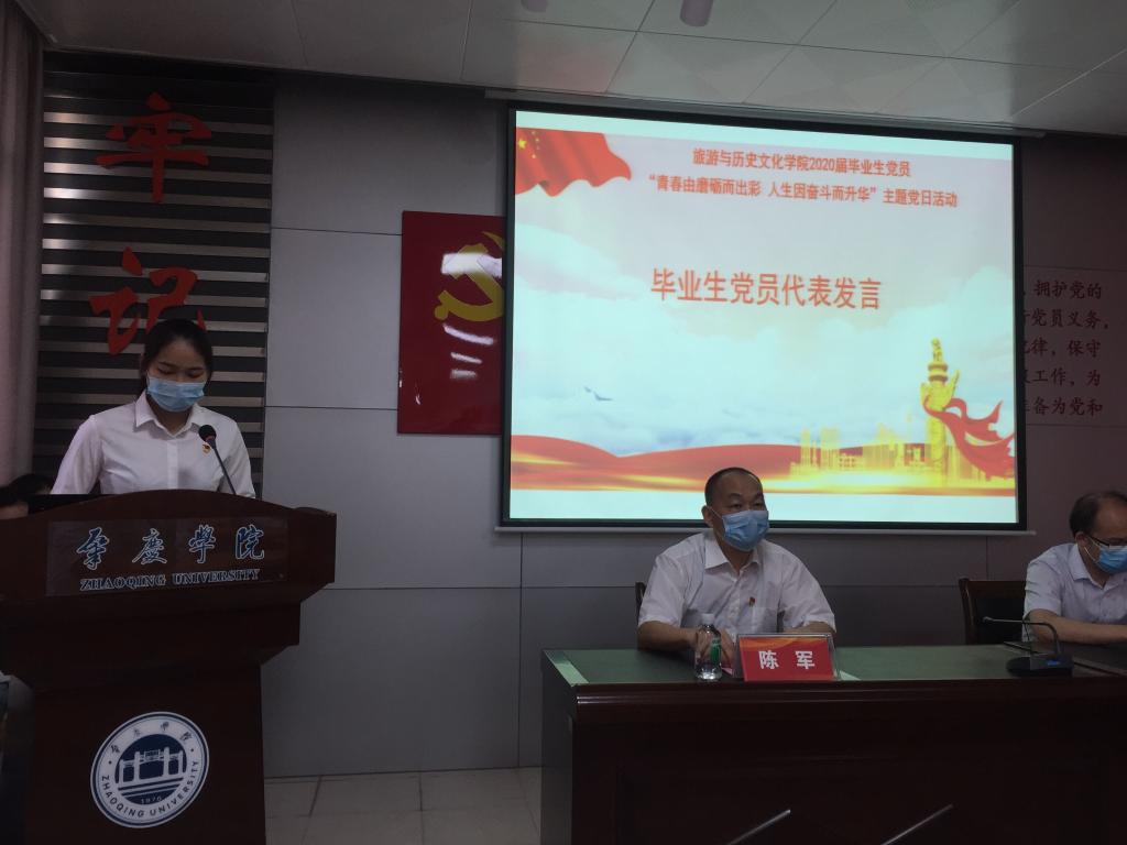 16级旅游管理2班戴玉映同学作为毕业党员代表发言,与大家分享了自己的成长经历,表达了对母校的感恩之情和对未来的奋斗信心。