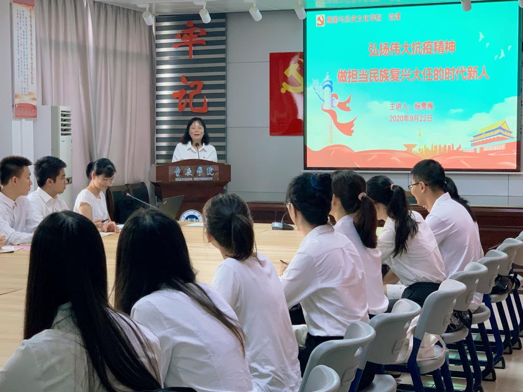 党委杨雪梅书记结合习近平总书记关于伟大抗疫精神的论述和员工党员的职责,主讲专题党课《弘扬伟大抗疫精神,做担当民族复兴大任的时代新人》。她勉励大家在学习、工作和生活中要弘扬伟大的抗疫精神,助力中华民族的伟大复兴:一是筑牢理想信念,坚定不移听党话、跟党走;二是厚植家国情怀,立志扎根人民、奉献祖国;三是增强集体意识,把个人融入集体、小我融入大我;四是牢记使命责任,练就过硬本领、争做时代新人。