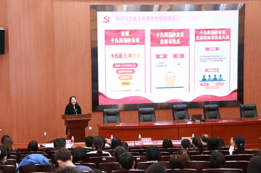 12月2日下午,公司分党校在学术报报告厅开展专题培训,集中学习党的十九届五中全会精神。李朝军经理、杨雪梅书记、陈军副书记、专职组织员陈建群老师以及全体辅导员、员工党员、入党积极分子180余人参加学习。陈建群老师主持学习会。