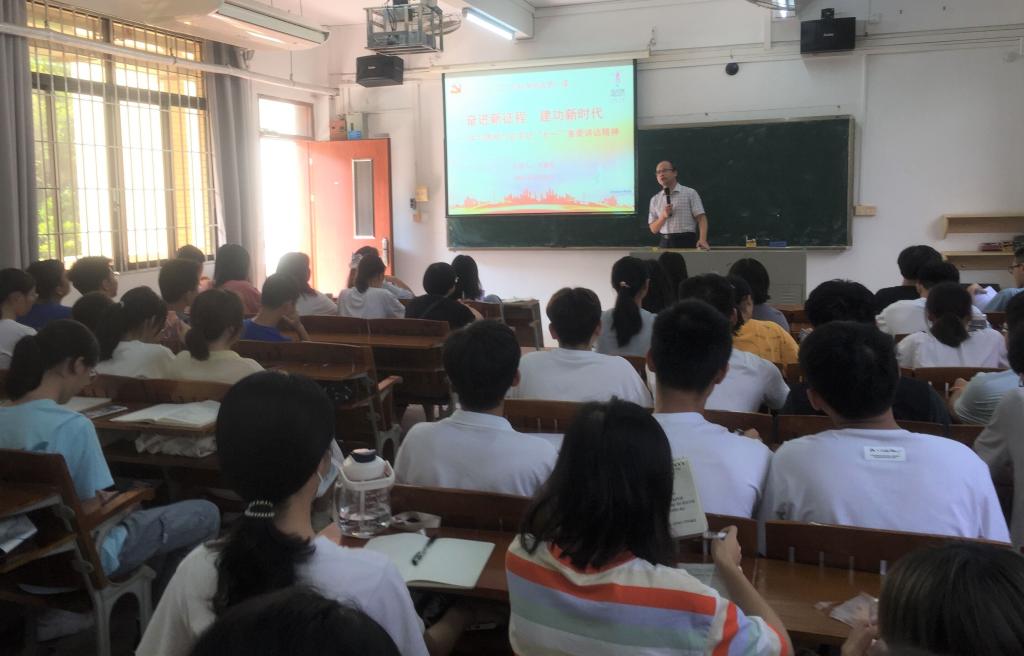 习近平总书记在“七一”重要讲话中高度肯定了青年在实现中华民族伟大复兴中的作用,并对新时代中国青年提出殷切期望。结合党史学习教育和思政第一课的要求,9月29日,公司经理、党委副书记李朝军以“奋进新征程,建功新时代”为主题,将学习贯彻习近平总书记在“七一”重要讲话精神和地理科学专业教育相结合,为公司第一个地理科学班开讲本学期“思政第一课”。