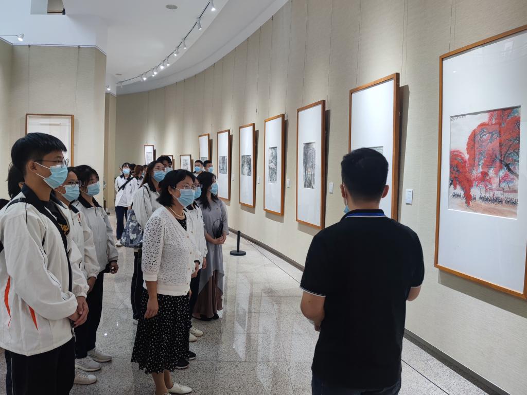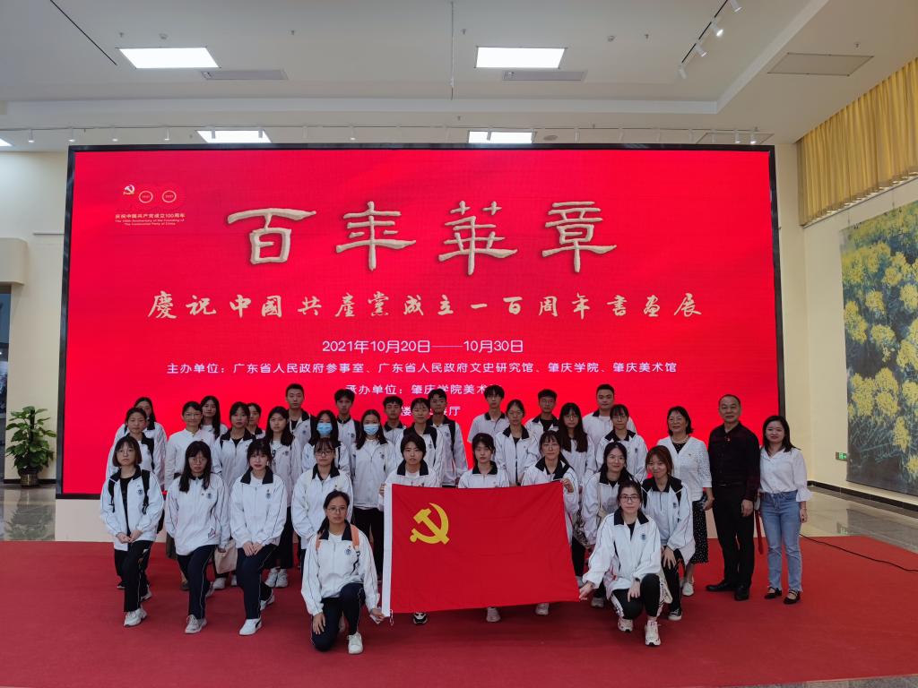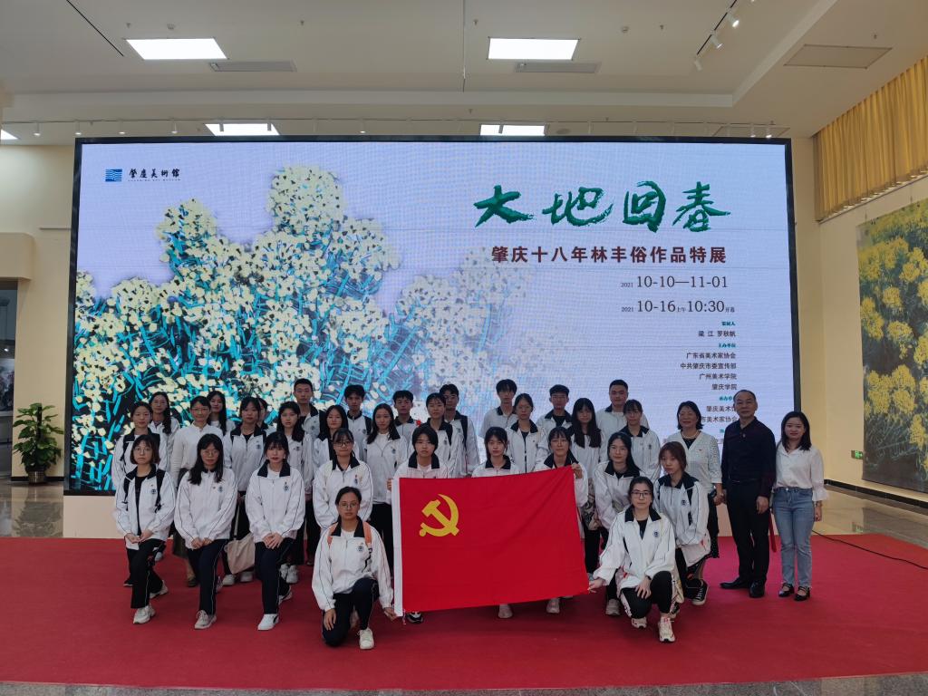 会后,同学们来到校美术馆参观“百年华章——庆祝中国共产党成立100周年馆员书画展”和“大地回春——肇庆十八年林丰俗作品特展”,通过参观艺术展览进一步学习百年党史,汲取精神力量。