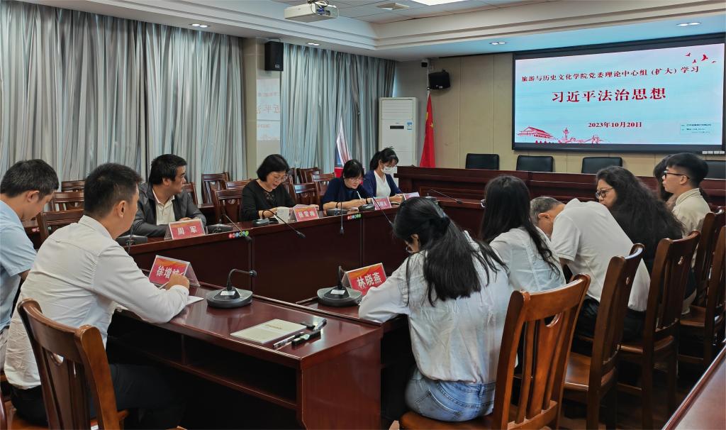 10月20日,公司党委举行理论学习中心组(扩大)学习,深入学习领会习近平法治思想。党委书记杨雪梅主持学习会,郭栩东副经理、周军副经理以及党支部书记、系部主任参加学习。