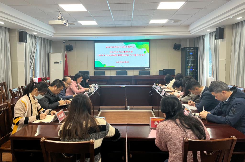 12月4日,公司党委理论学习中心组举行学习会,专题学习习近平总书记重要文章《推进生态文明建设需要处理好几个重大关系》。杨雪梅书记主持,李朝军经理、郭栩东副经理、周军副经理,党支部书记、系部主任、骨干教师代表参加。
