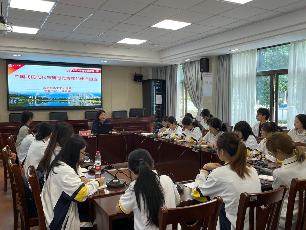 参加的同学认真听讲,纷纷表示获益匪浅。钟爱欣同学表示,通过思政第一课的学习,更加了解到中国共产党带领人民一路走来的艰辛历程和“中国式现代化”的重要意义;更加明白作为新时代青年要担当时代重任,在中国共产党带领下走高质量发展道路,要为中华民族伟大复兴贡献自己的一份力量。