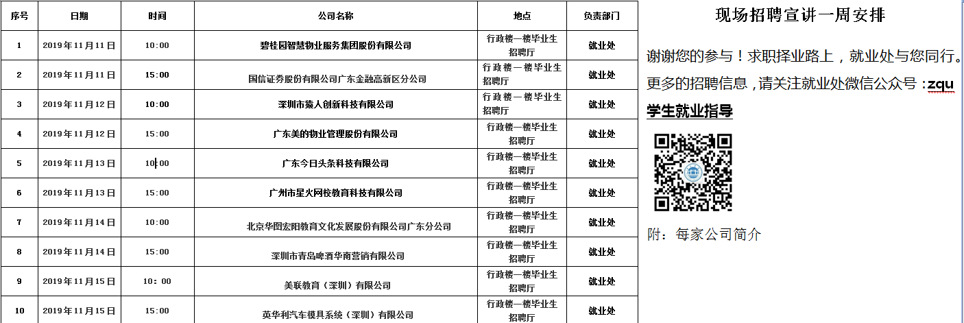 集团11月11日-15日招聘宣讲信息