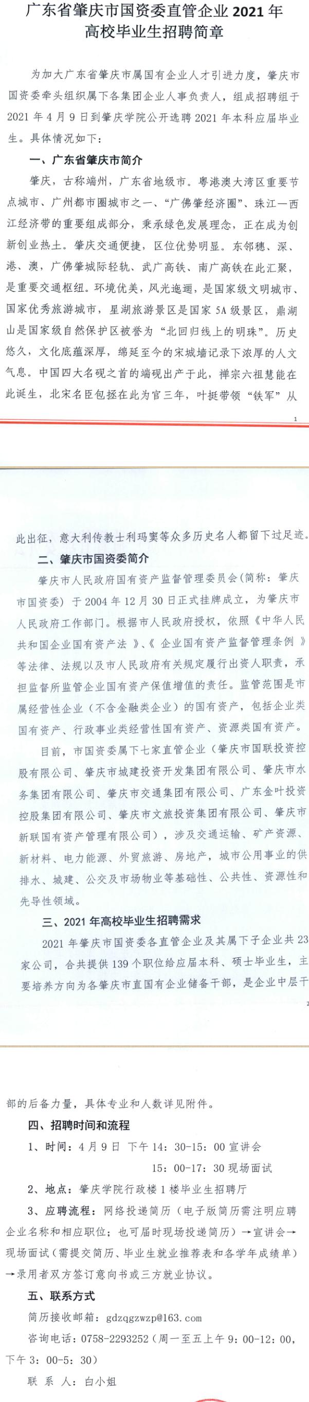 肇庆市国资系统直管国有企业招聘会